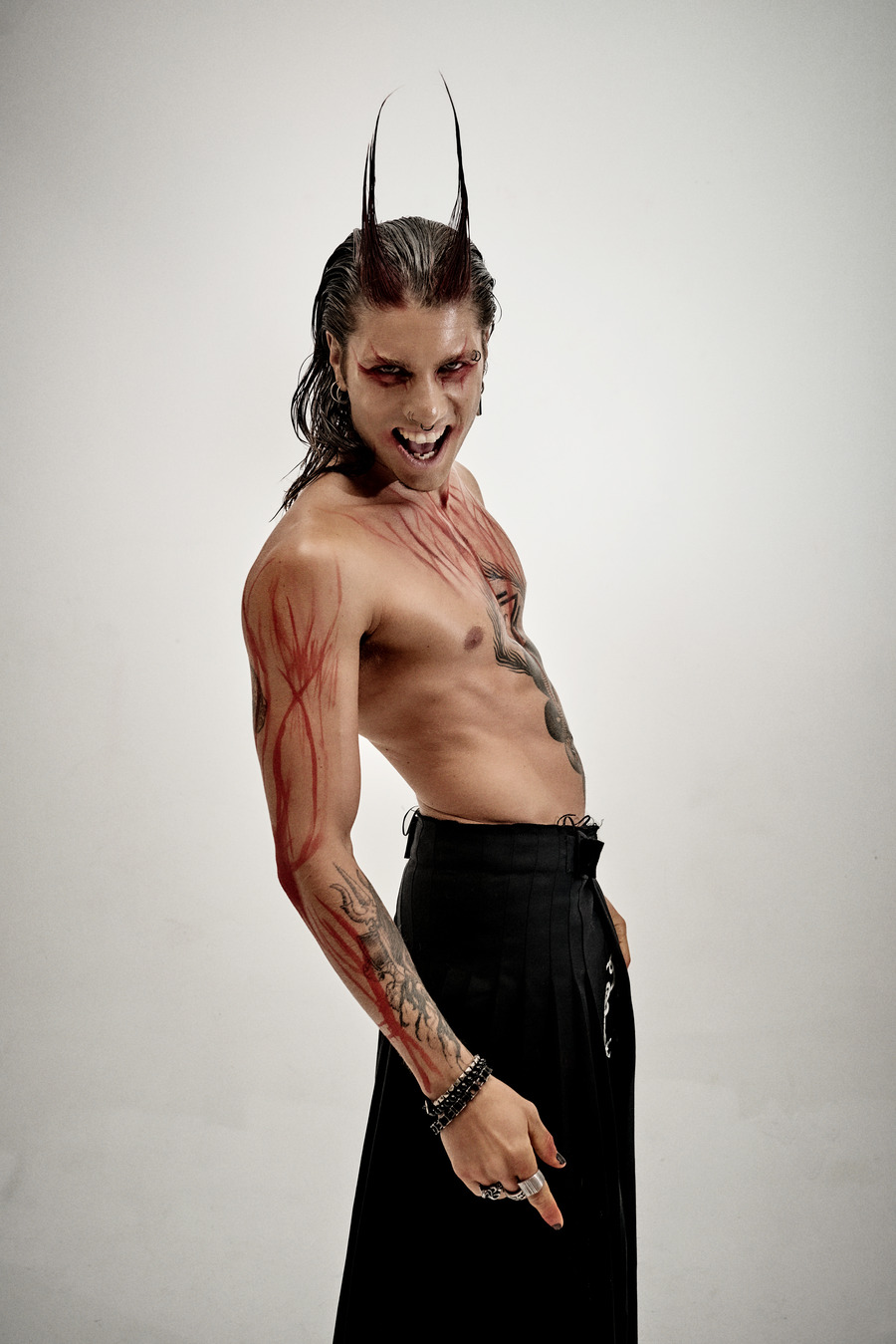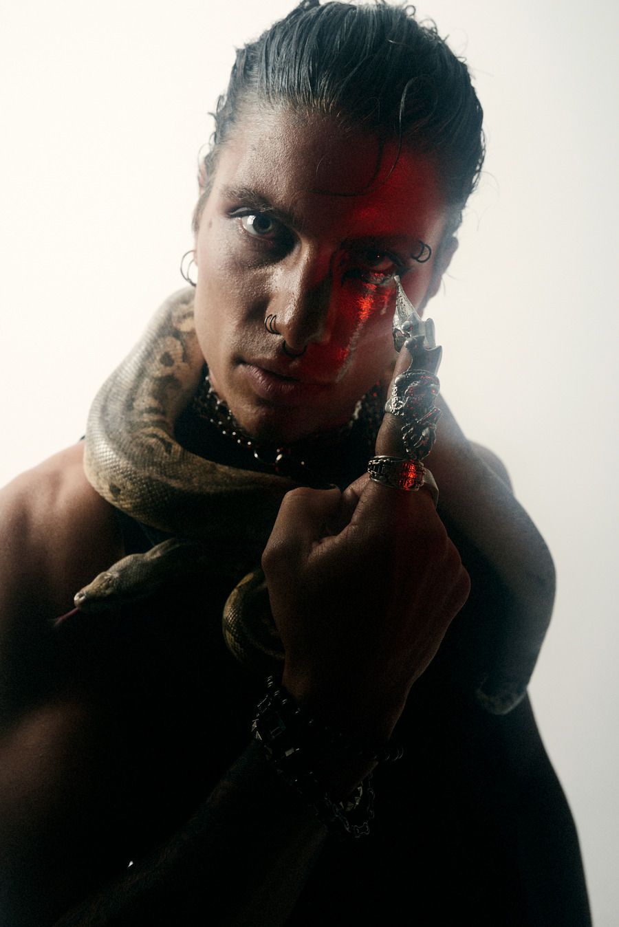 A KALTBLUT exclusive editorial. Photography by Govii Cardinni. The models are Lorenzo Raganzini and Paolo Ferrara. Makeup by Azul Prusia. Fashion by Harty, XXL Hardware, Hex Clothing, New Rock, Paolo Ferrara Custom.