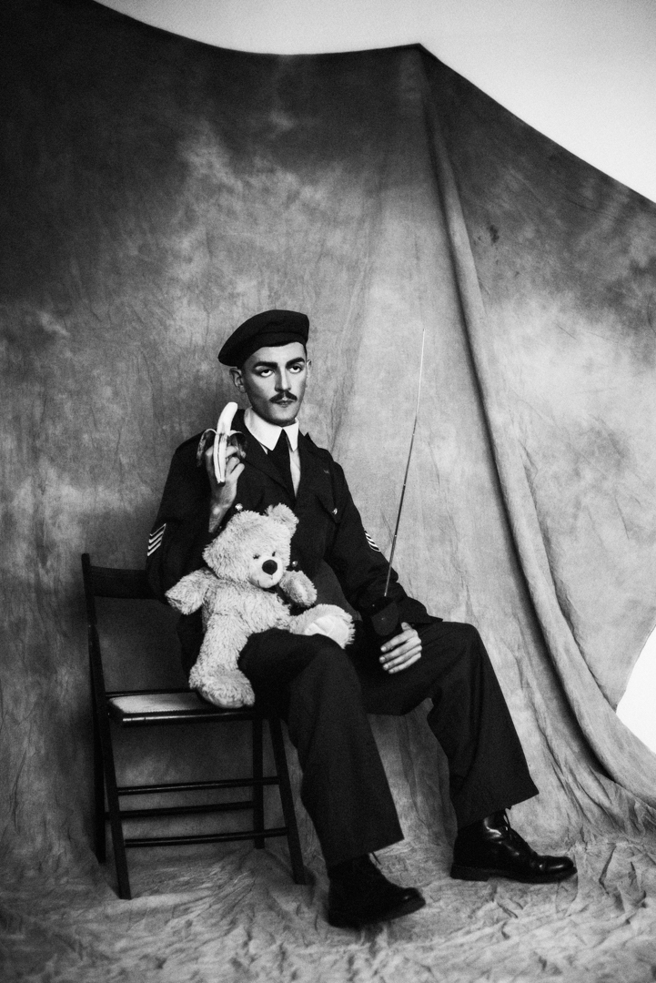 “My childhood is one I remember to be rather obscure, melancholic, and dreamlike. ‘Hide and Seek’ is a playful exploration and ode to my inner child. This series of self-portraits shows different characters through which I embody visions of my past in the present moment.” *Arber Sefa