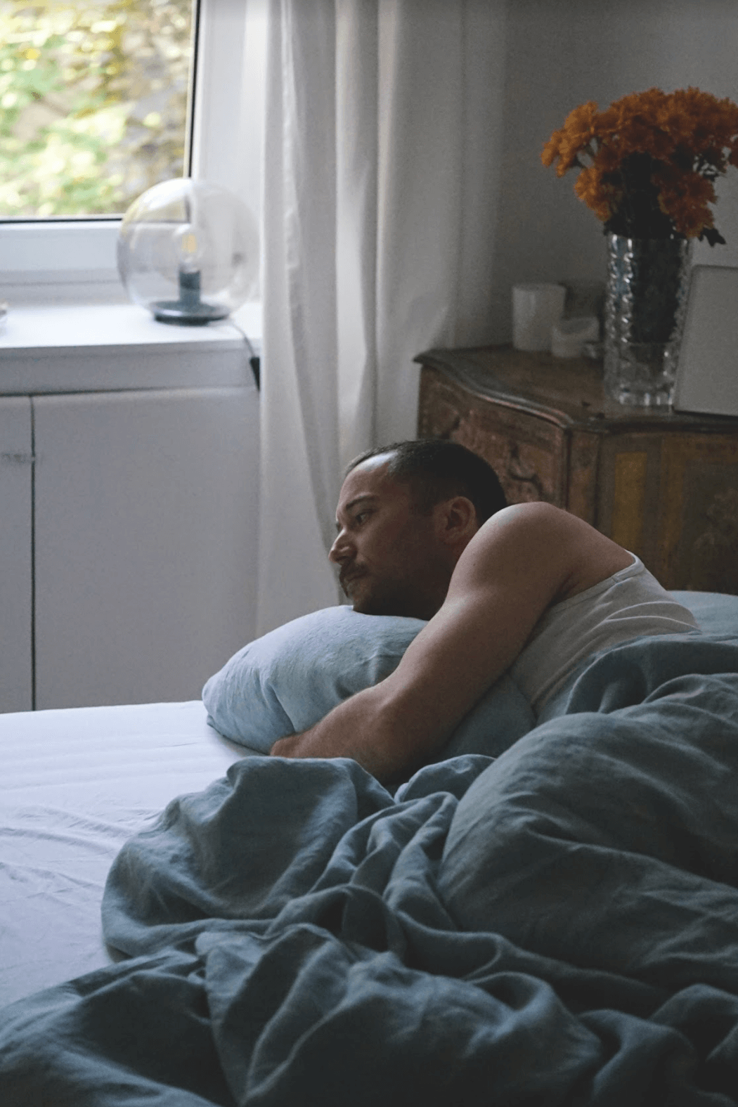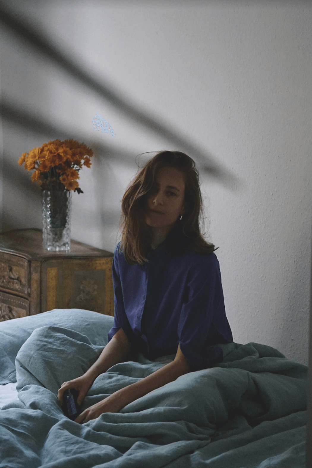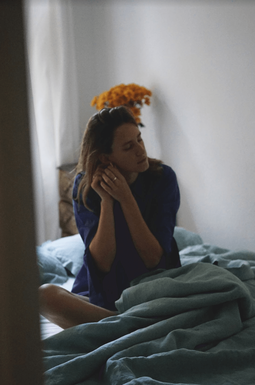 Bed Linen @dreamonhome.eu, Shirt @iimaimaofficial, Gold studs @sibillasantucci_jewellery, ring: @ginamelosijewellery