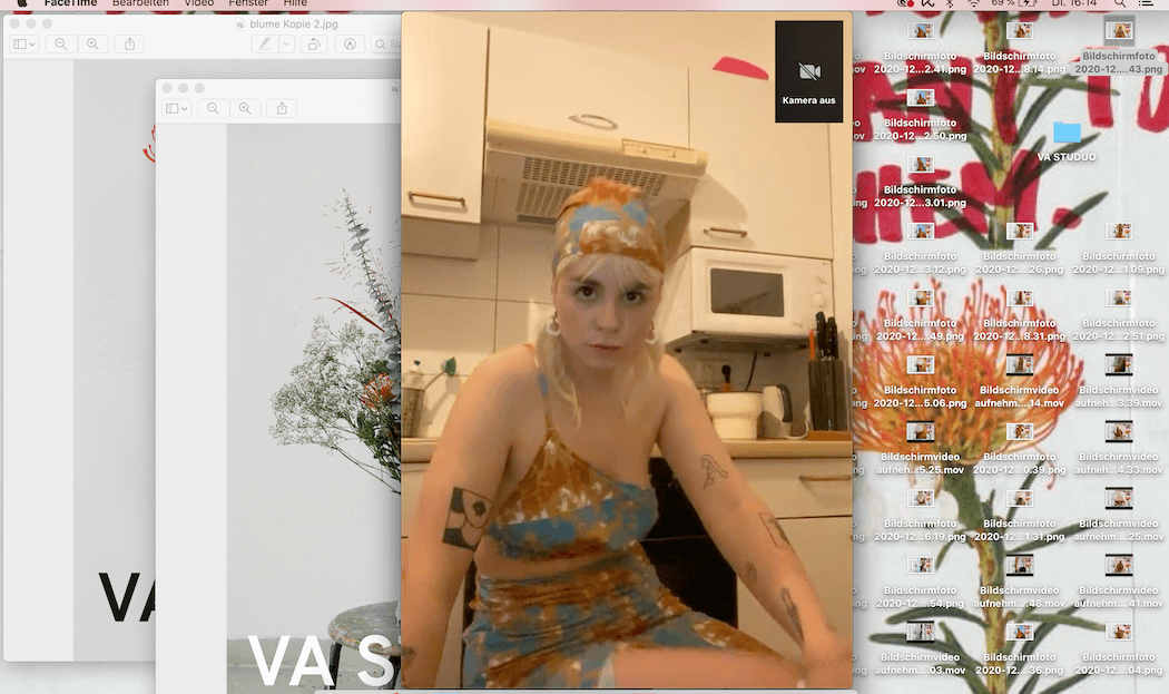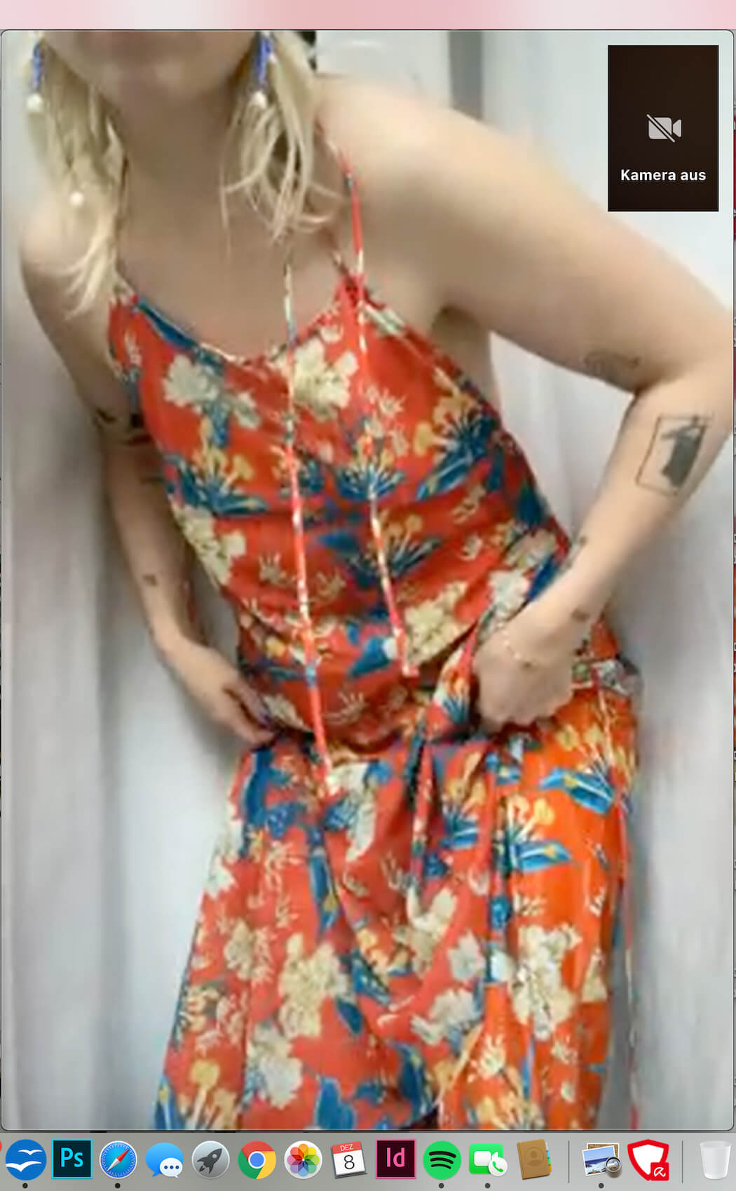 “Due to the already very long lockdown and the difficulty of organizing fashion shoots, we contacted us with an inspiring personality from Berlin – Ann-Sophie Körber. We are able to realize our photo shoots in the form of screenshots from a distance and we are thankful about the internet and the possibility to have a face time conservation these days. After a short consultation, we sent Ann-Sophie our designs and arranged a date. Although we met us from a distance, it was endless fun and the result was a successful piece of work. The result shows that it is possible to deal with the situation creatively, even from a distance, and that there are different modern solutions. It was a great meeting from two different places.”