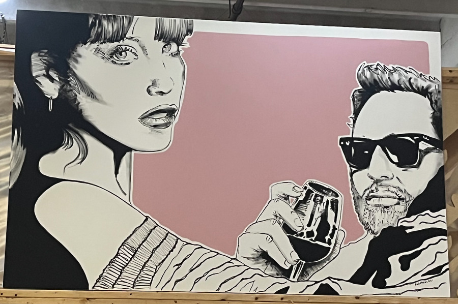 “Retreat Volume I” will take you on a journey through captivating large black and white sketch paintings set against muted pastel backgrounds, adorned with mesmerizing neon accents. In this body of work, Falopapas’ unique visual language captures the essence of stillness, reflection, and the delicate interplay between light and shadow.