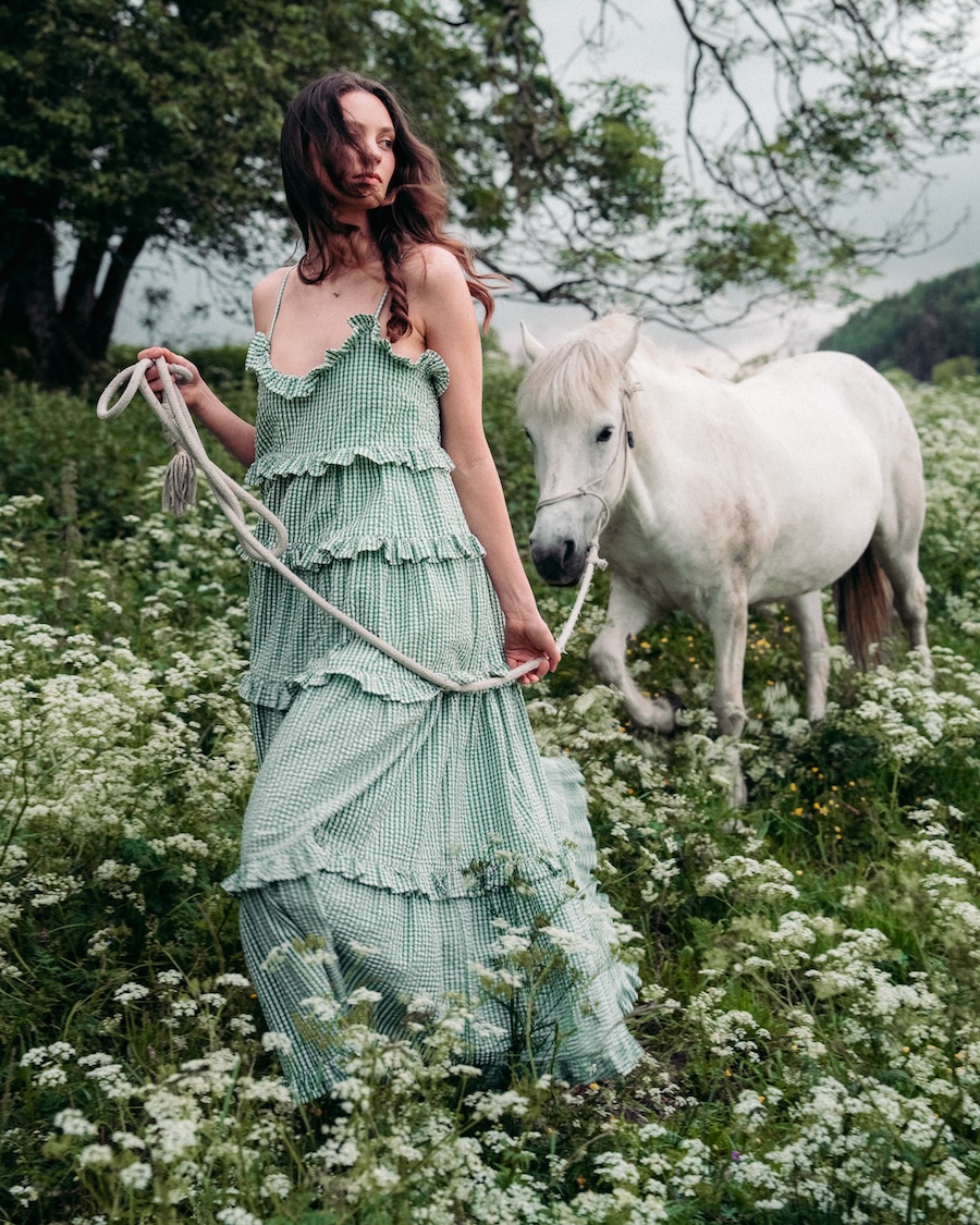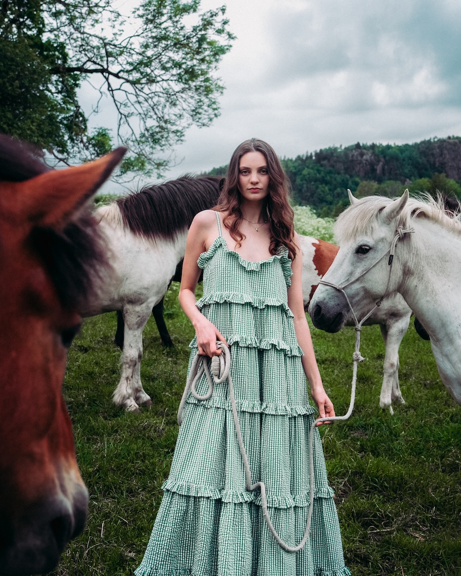 In “Horses in the Hills”, Sebastian Jacobsen explores what it might be like for two young royals to escape their duties, to breathe and to be free amongst the horses in the nearby hills. Here, the sisters share a kind of melancholic peace –knowing soon they must return to the pressures of their world. Additionally, tying together concept and reality, the shoot took place in front of the countryside home of the Norwegian Royals in Asker, Norway.