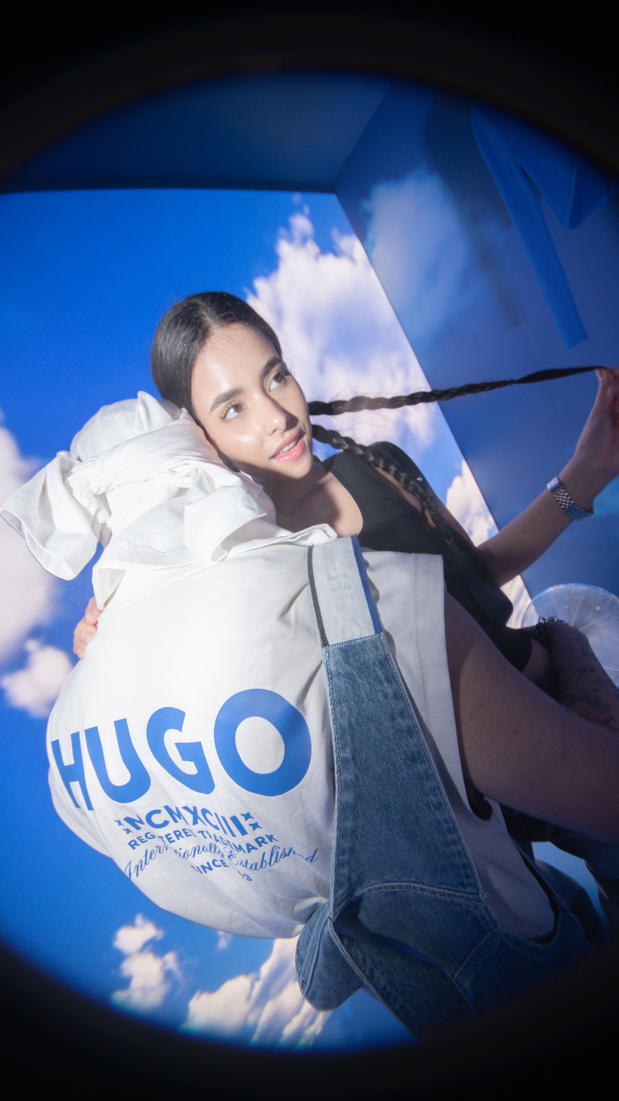 Stepping into Wilhelm Hallen, guests were greeted by a captivating blue “tunnel” entry, whisking them into the heartbeat of HUGO BLUE. The space breathes life with its selection of menswear, womenswear, and inclusive unisex apparel, grounded by denim essentials and amplified by streetwear must-haves like graphic tees and robust outerwear. The collection’s pivotal pieces found their spotlight in three whimsically adorned “closets,” each offering an abundance of Instagrammable moments.