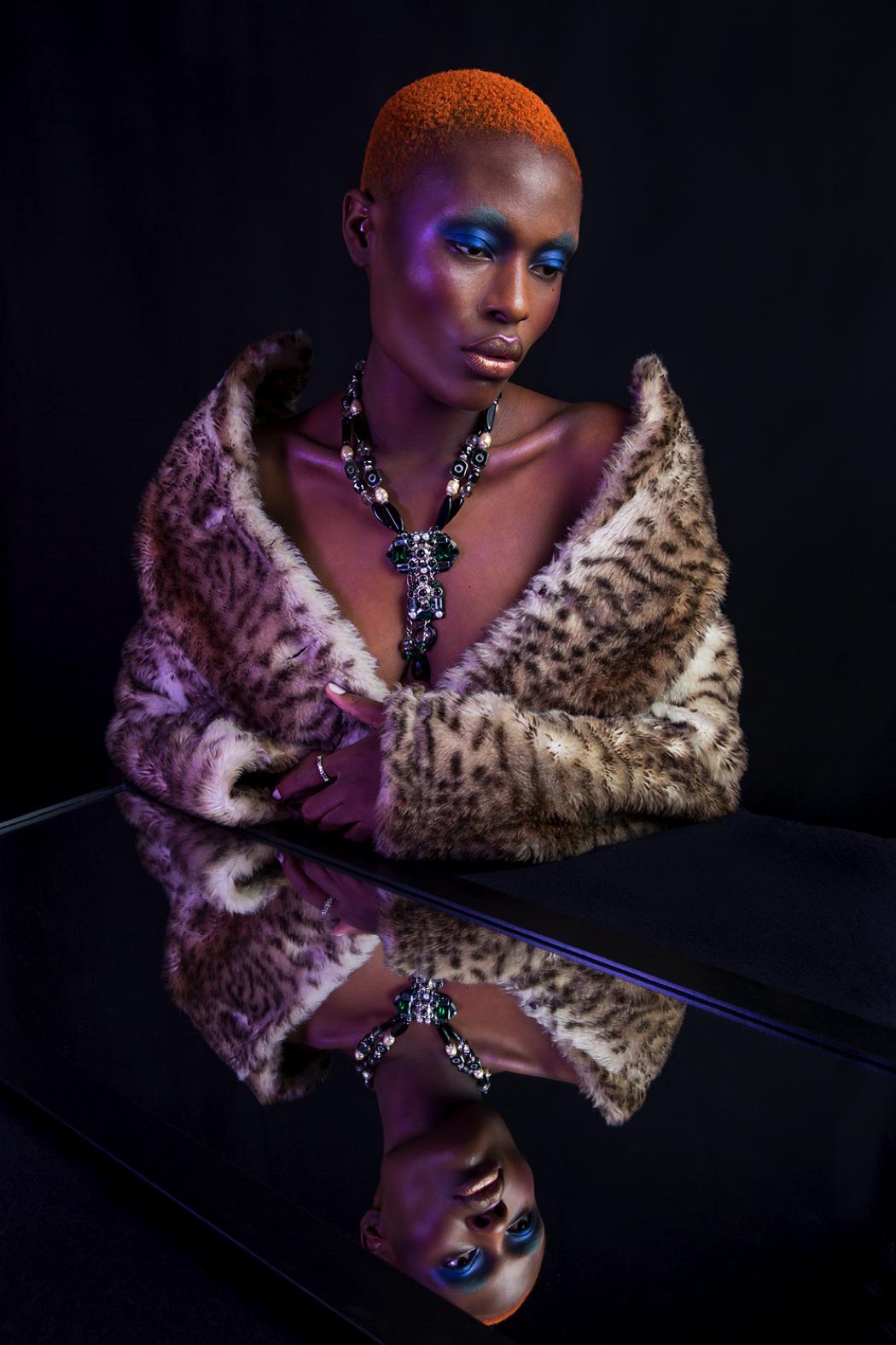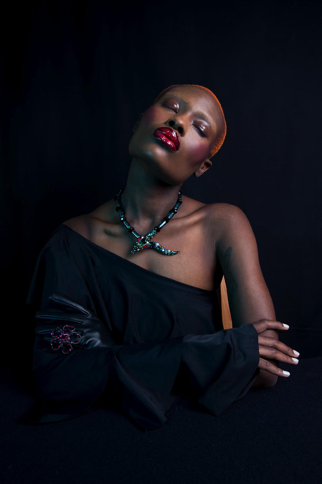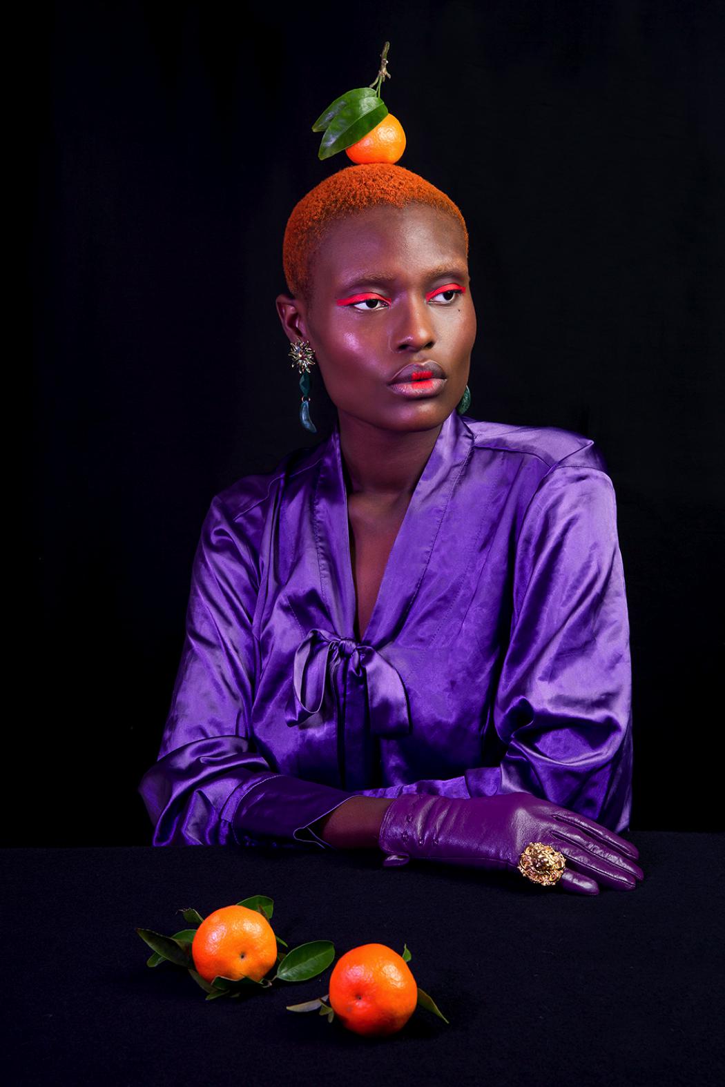 Ksenia Usacheva is a fashion and art photographer, a visual artist currently based in Paris. Human art Object is a series of still life fantastic portraits, in which human beings are represented as immobile objects. Decorated with symbolic still life attributes, characters become idealised by their own beauty. Djamila Imani is a model, visual artist, performer and a painter.