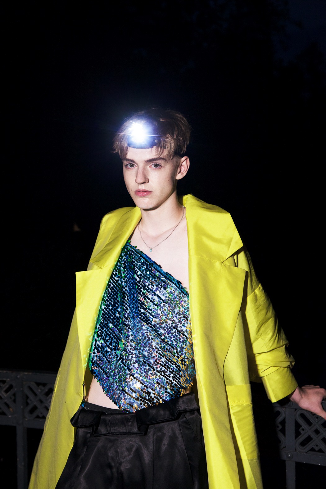 A KALTBLUT exclusive menswear editorial. Photography by Uros Kramberger. Model is Johann Wim. Hair & Make-Up by Aurelia Salvaggio. Stylist Y. M. Adhimiharja used fashion items by Y. M. Adhimiharja, EME Clothings, Abeer T Dar, Hannisch Bag by Johanna Schumann, Marilis, Samuel Acebey.