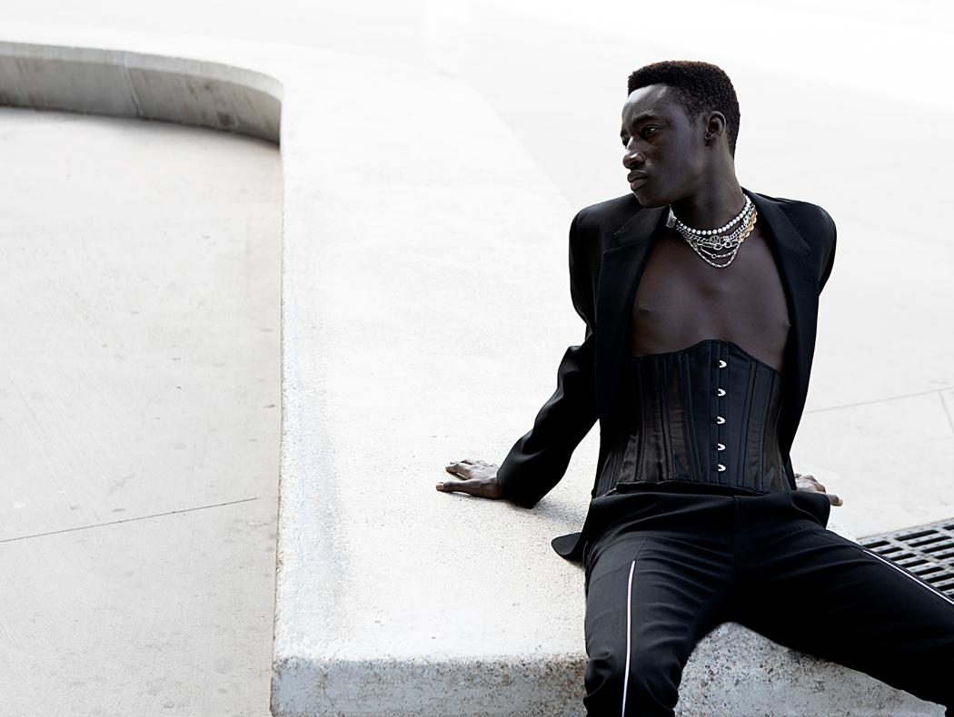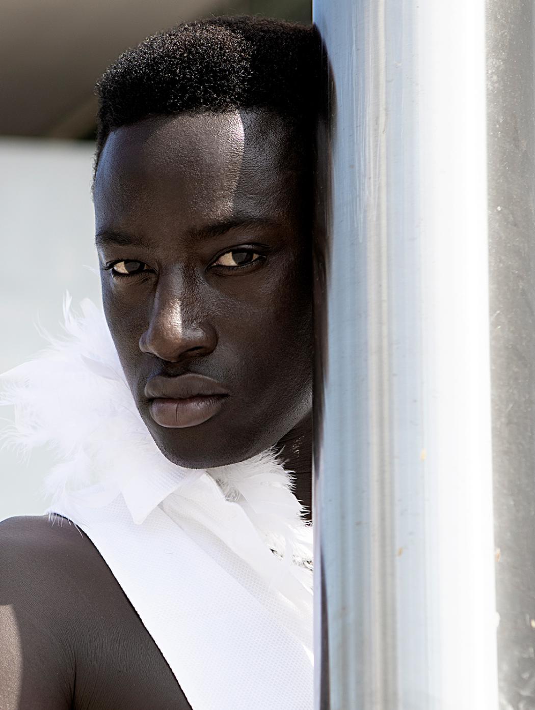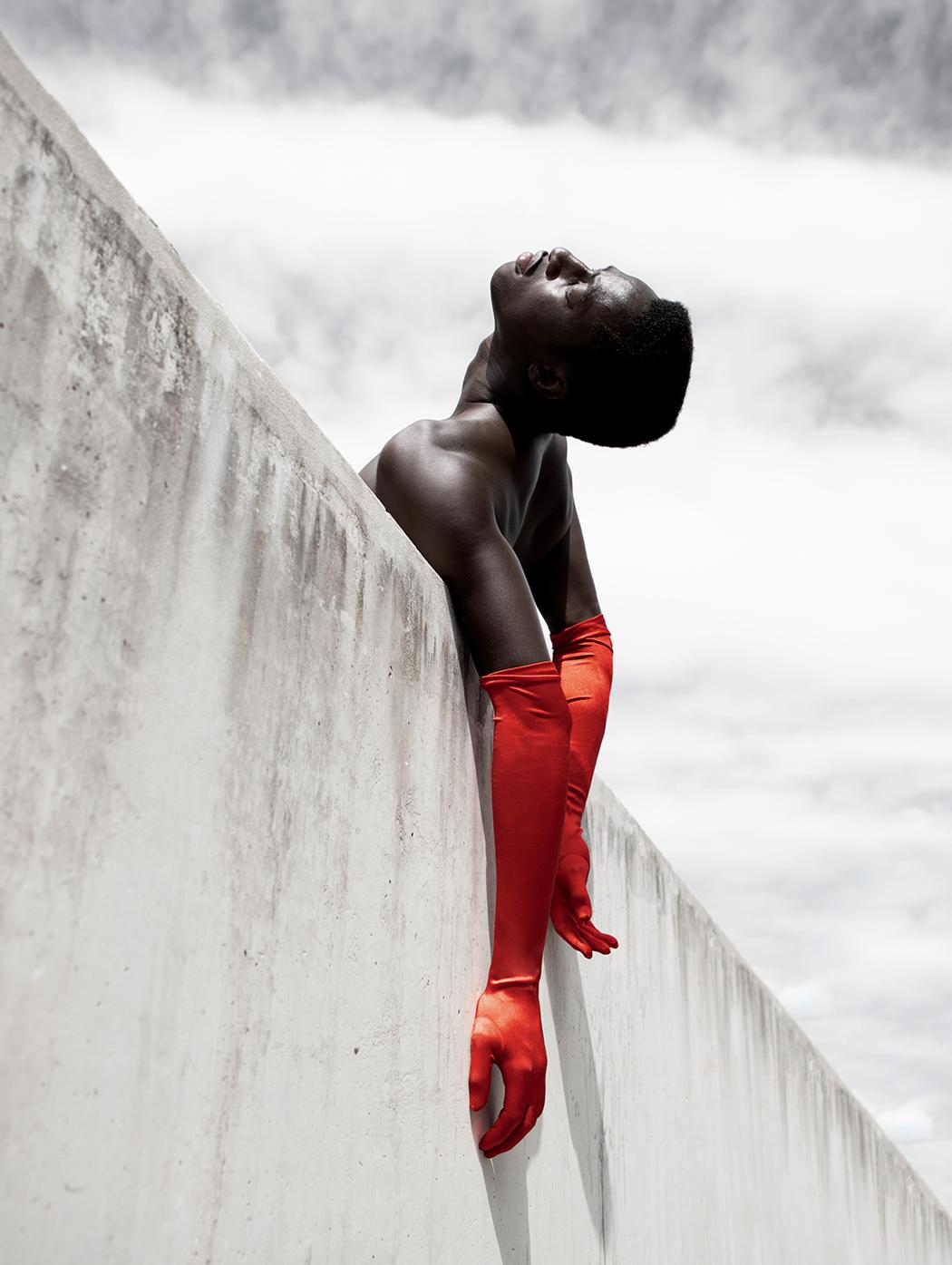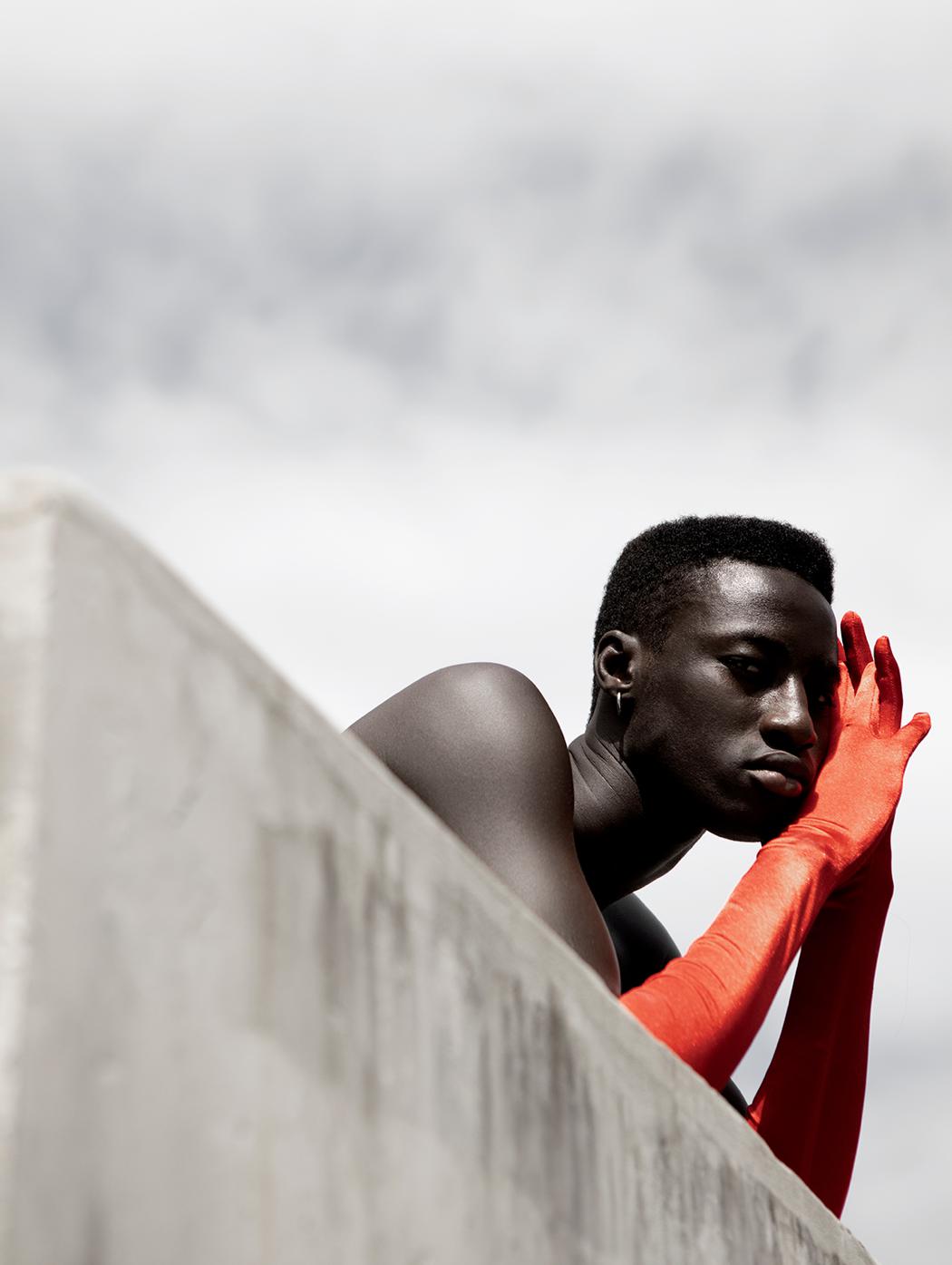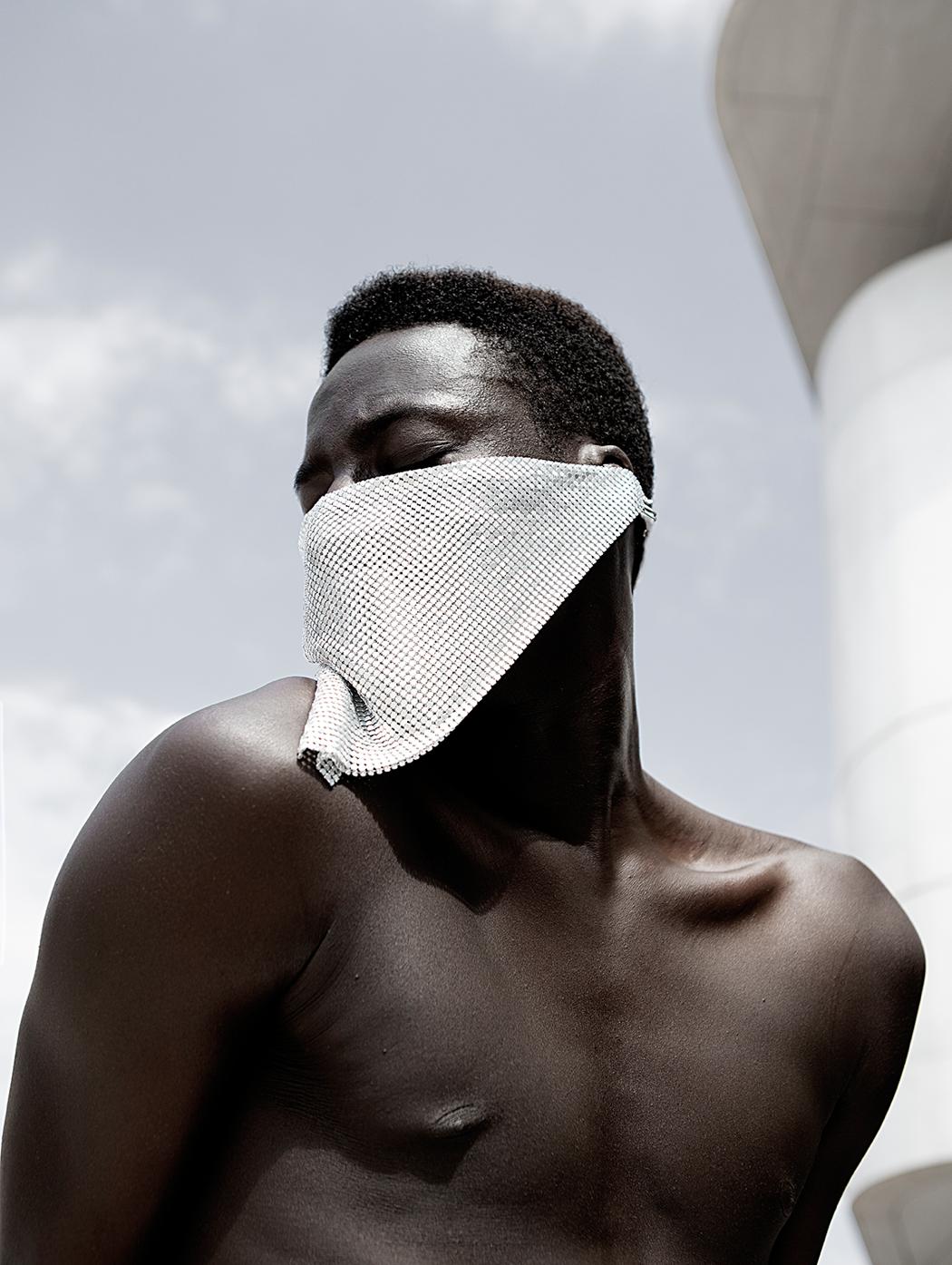 A KALTBLUT exclusive. Model Madicke Diop. Olga Jakovleva is a fashion photographer based in Nice, France. “In this story, we would like to show human feelings and self-awareness. Even at this time when you have to hide behind the masks and gloves on the streets, you still are unique, and you still represent yourself to this world through your inner aesthetic.” Brands are Alexander Mcqueen, Valentino, HM, Prada, Massimo Dutti, Nadya Piskun (corset).