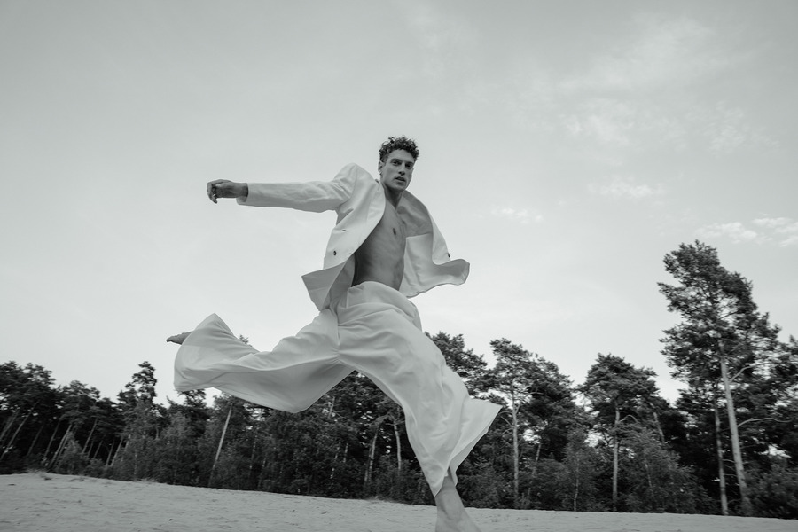 Those fleeting moments just after the sun has set. The light fades so quickly, leaving one with a profound sense of how transient such a magical moment truly is. You find yourself wanting to hold on to it, to cherish it, and to remember it for as long as possible. With model Innes Maas, I’ve found my muse to bring this vision of ethereal beauty to life.”