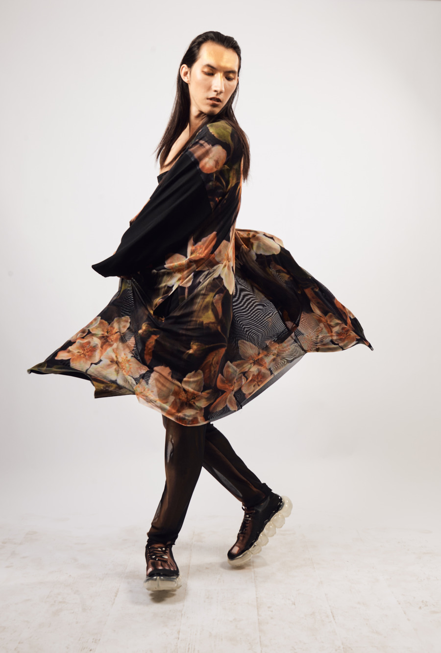 The collection proposes newness via bodycon dresses, tops and leggings printed on soft semi-transparent Italian mesh and printed with images of artistic nudity, male and female, and full-body harnesses. Almost all garments are “played” on male and female models, inviting openness toward traditional gender roles. In line with IA London’s ideology of timeless and responsible fashion, the new collection shows just enough to deliver its new artistic vision for this season.