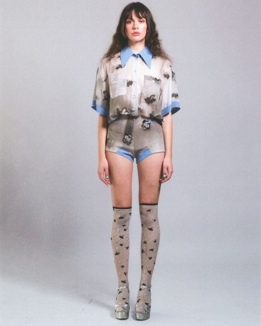 Contrast palette between pastel and vibrant or dark colours are used to visually convey fluctuating, uncontrollable emotions. The shape of each garment is carefully designed to fit and hug unique and different bodies. The resulting silhouettes are fresh, joyful and contemporary pieces designed to accompany a woman in her everyday life.