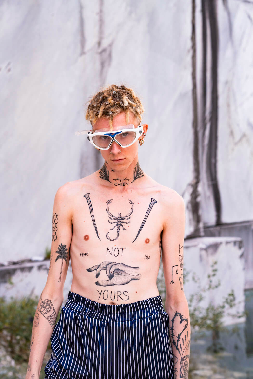 A KALTBLUT exclusive editorial by Andriana Tuesday Kmetyk. Model is Manfred Vannucci. Make up is by Sara Bellandi. Brands are Kruzhok, Zara, Bad Snatch, Tommy Hilfiger, Calzedonia.