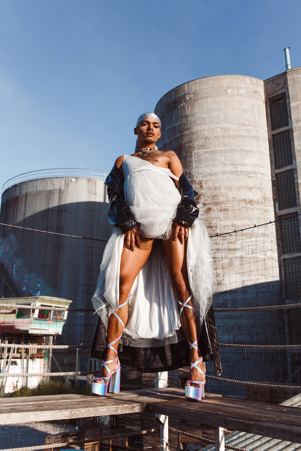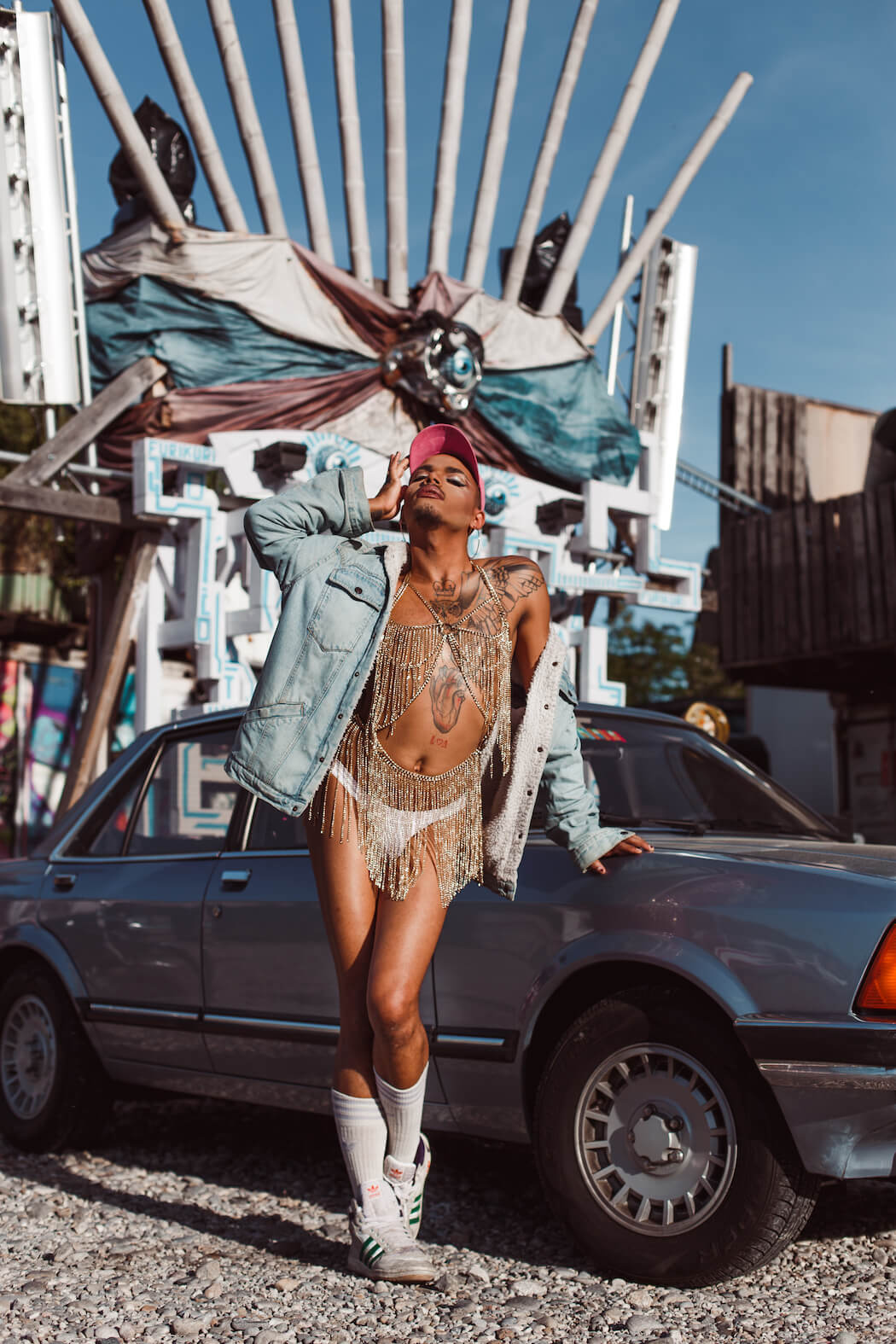 A KALTBLUT exclusive. Model is Ivy Monteiro. Photography by Fabienne Bieri. Brands are Adidas, Zara, Dollskill. “I am a fashion and portrait photographer based in Switzerland. In my work, I explore the crossroads of fashion, self-expression, bodies and gender. This is a collaborative story with electric model Ivy Monteiro, performer, dancer and mother of Switzerland based House B of Poderosa.” says Fabienne Bieri