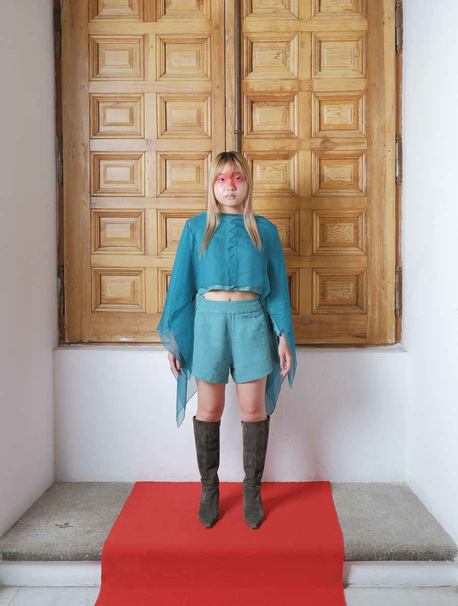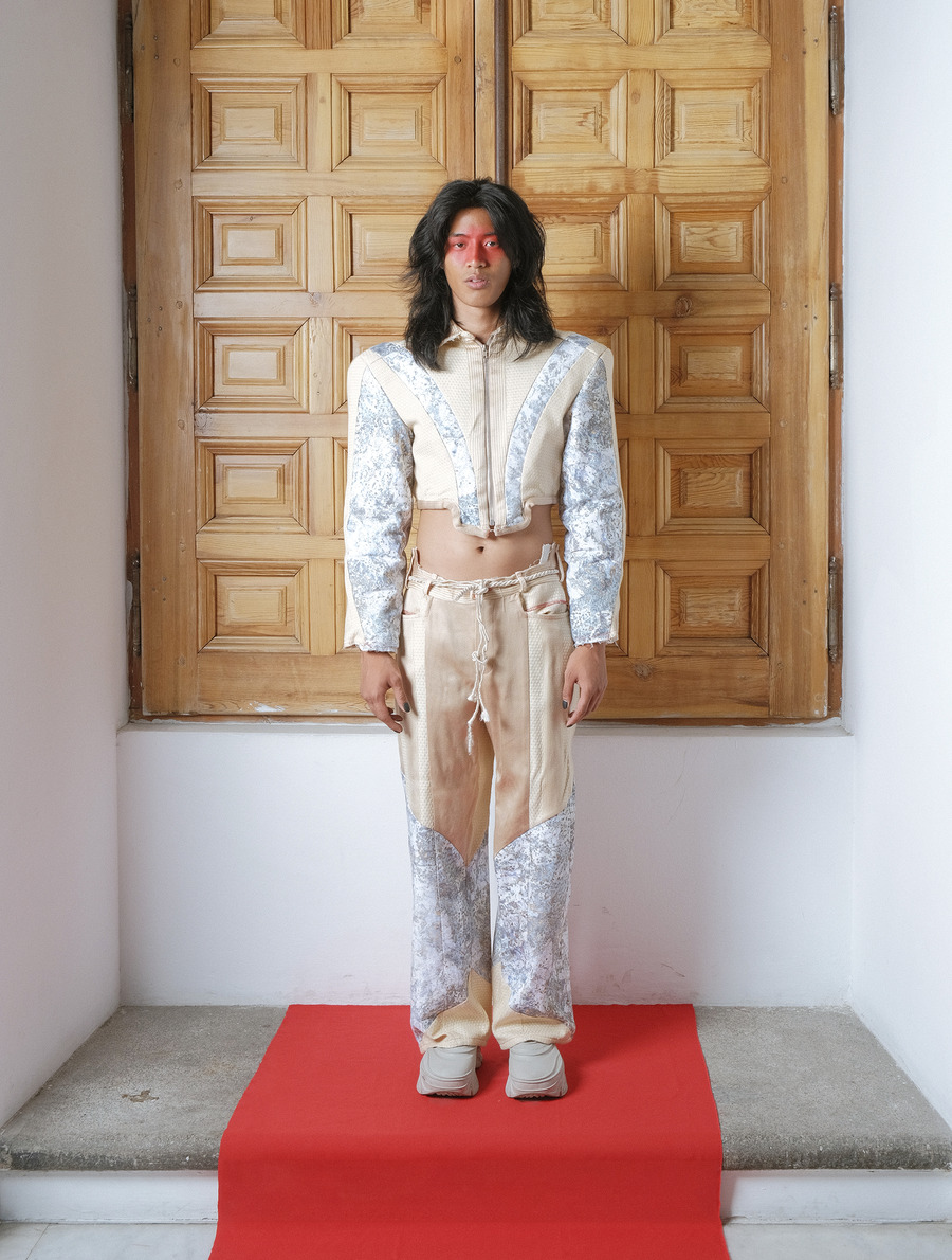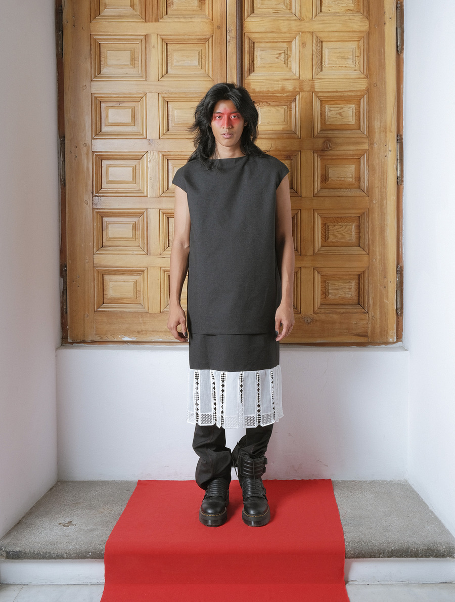 “In my collection Jano Bikoitza I explore the evolution and differentiation that I and my twin brother have experienced through external factors, such as role models. My project investigates how two people with the same genetic material have found distinctive ways of expression. Therefore, the garments are at the same time multiple garments, multi-position pieces that everyone can adapt and wear according to their personality and how they want to express and show themselves.