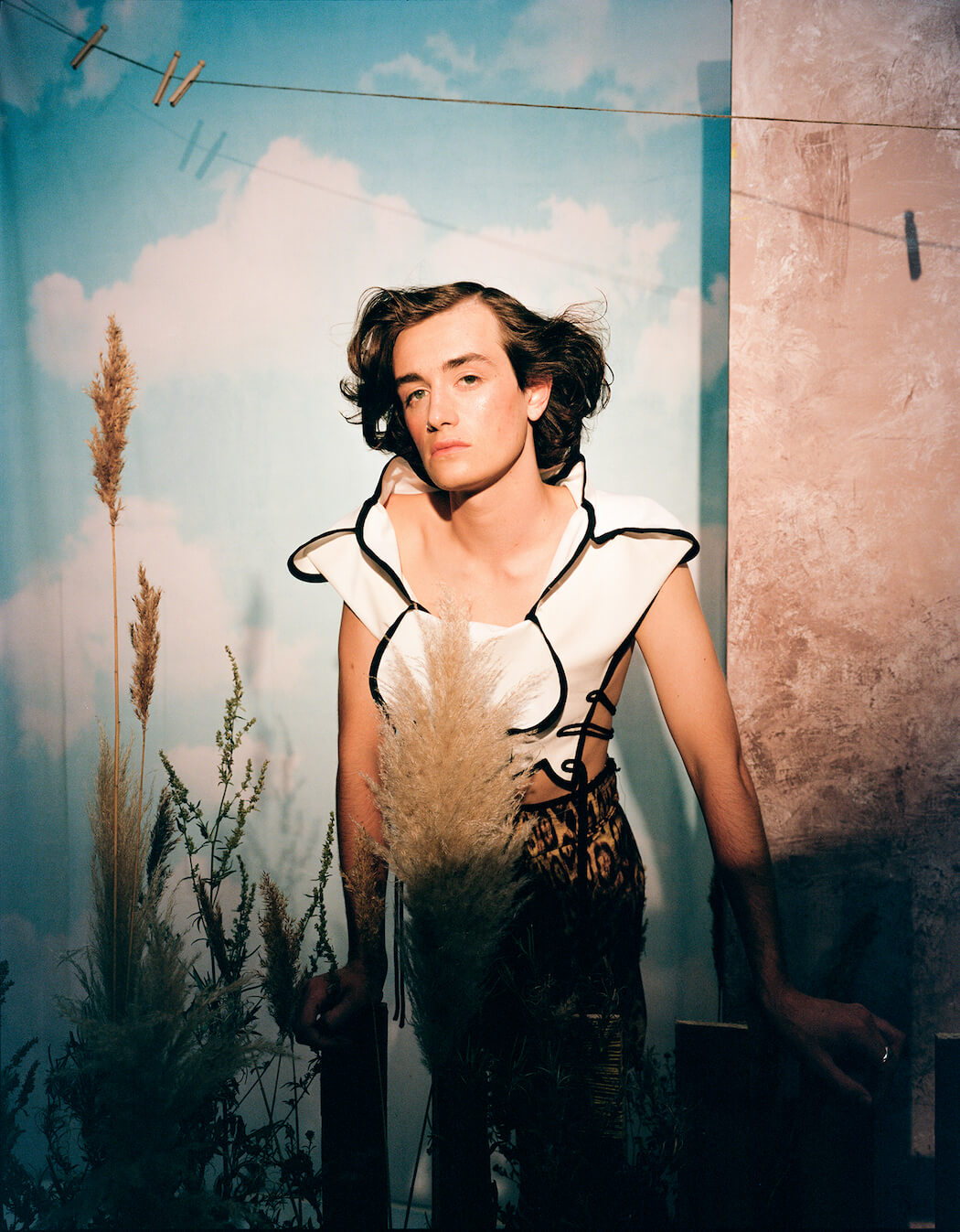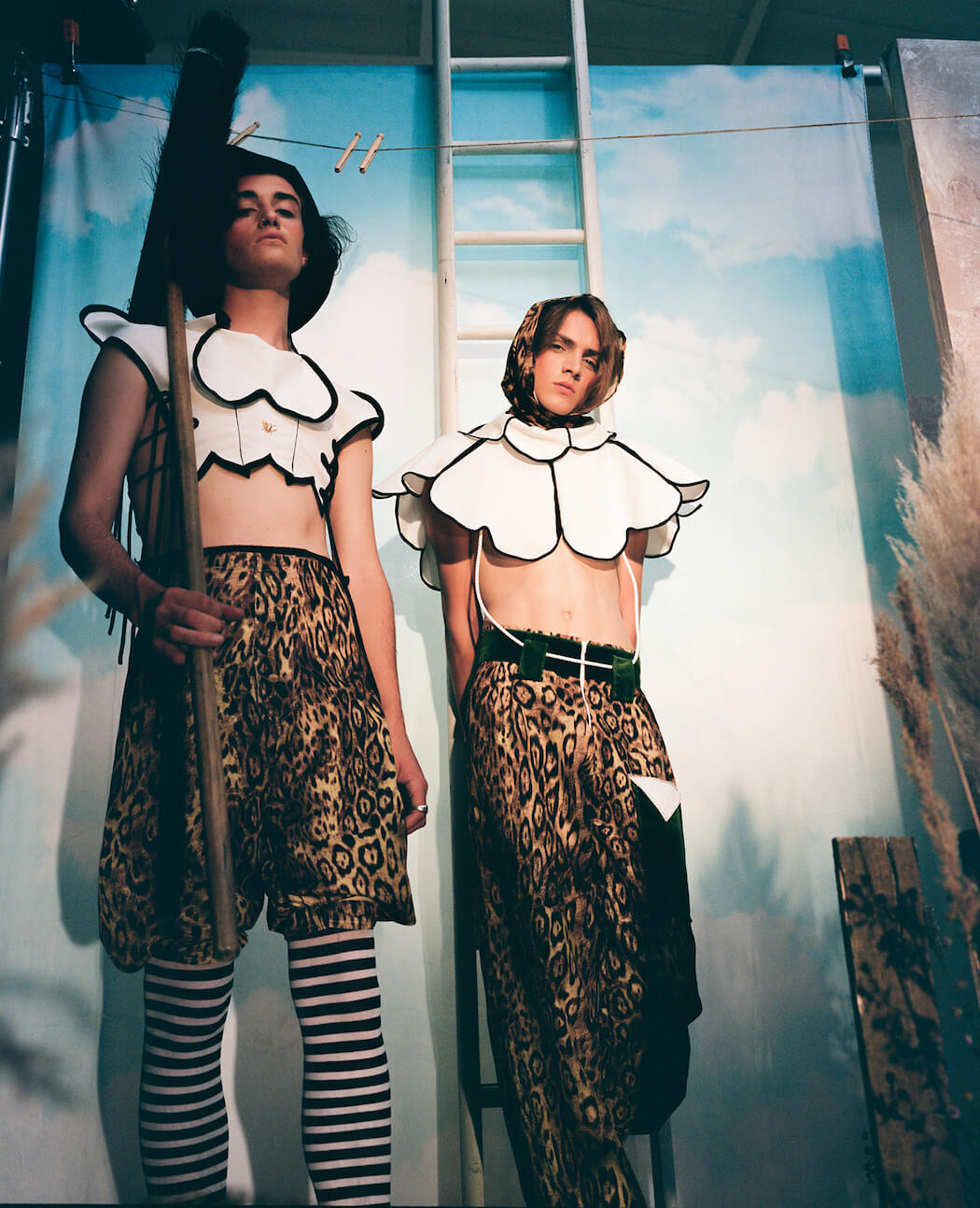 A KALTBLUT exclusive. Photography and styling by Polish Creator – Greg B. Models are Teddy and Luc signed at MENACE MODELS. Make up artist is Amy Byron. The hairdresser is Sharon Robinson. The set designer is Hanna Knowles.” All of the pieces of clothes have been made from scratch by myself(polish creator Greg). Fabrics used in order to create them come from second-hand shops. It is a sustainable collection of clothes inspired by the name of the photoshoots. Shoes: Underground England”