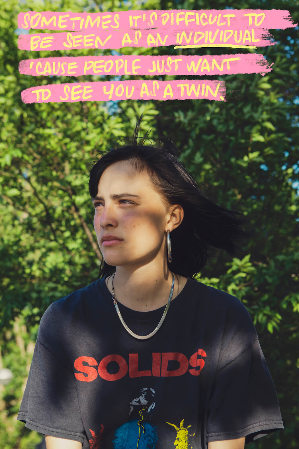 “This 90s inspired editorial is called “I’m my own person” and it’s starring the twins Josefa & Cecilia from Viva Models. They’re not really playing a part, they’re themselves and so the story is very much about them, their connection as twins but also about them as individuals and how difficult is some time for them to be seen as their own person. Everything that is written on the photos is taken from an interview we did with them.