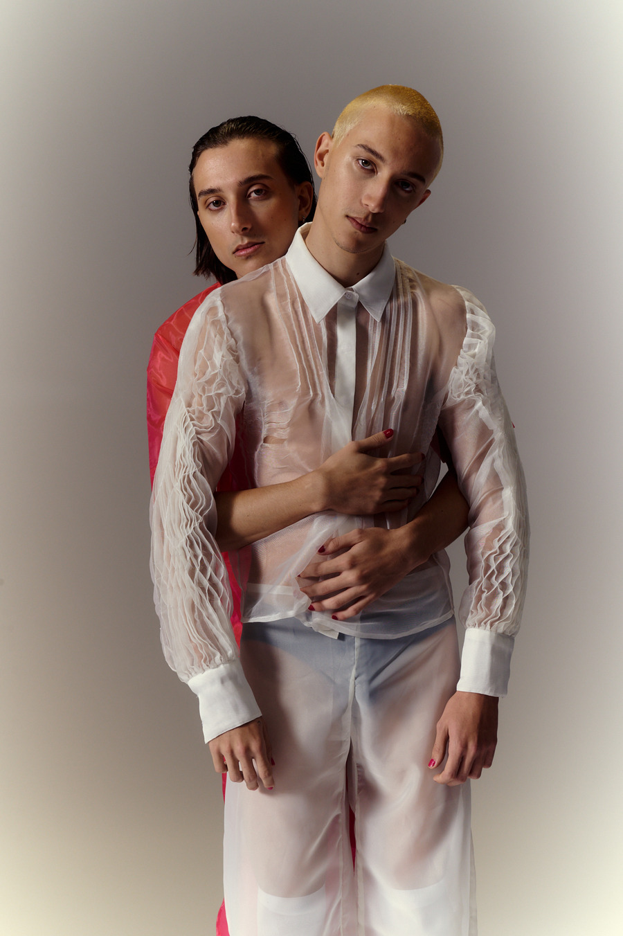 A KALTBLUT exclusive. Photography by Paulo Herrera. The models are Alfredo Aleo & Alberto Aleo. Styling By Valentina Carrillo. Set designer is Álvaro Suárez. Brands used are Haikure, Hortensia Maeso, Paola Molet, Simorra, Weili Zheng, AKEP, Corsicana, Yamore, Kiabi.