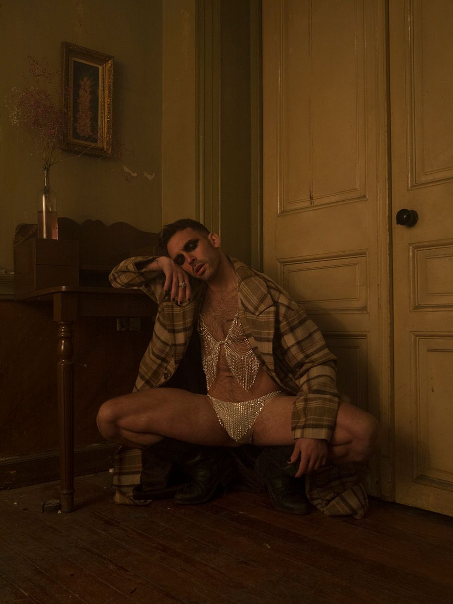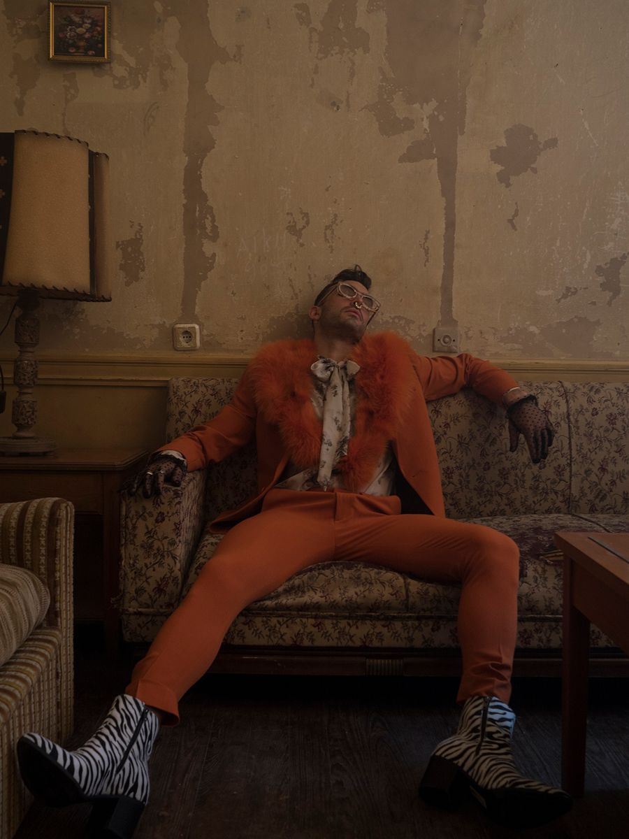 A KALTBLUT exclusive. Photography by George Kalfamanolis. The model is Iasonas Mandilas. Styling by Dennis Kolpodinos. Grooming by Anna Rousou. Brands used are Asos Design, Gucci, VD furs, Collusion, Agent Provocateur, Golden Goose, Dantee Design, Dsquared, Bershka, Zara, Roula Mandelou, Current Mood, and Swarovski.