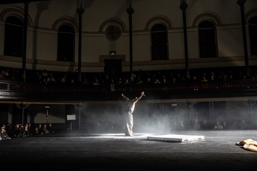 Bornsick beckons audiences into a unique introspective experience, performed on a full-sized gymnastics sprung floor in the round. With a background as a former Great British gymnast and Acrobatic Gymnastics World Champion, Walker merges their expertise in movement with a profound understanding of dance, having earned a degree in Contemporary Dance. Their illustrious career spans across theatre, film, fashion, and music, continuously shaping the contemporary landscape of performance.