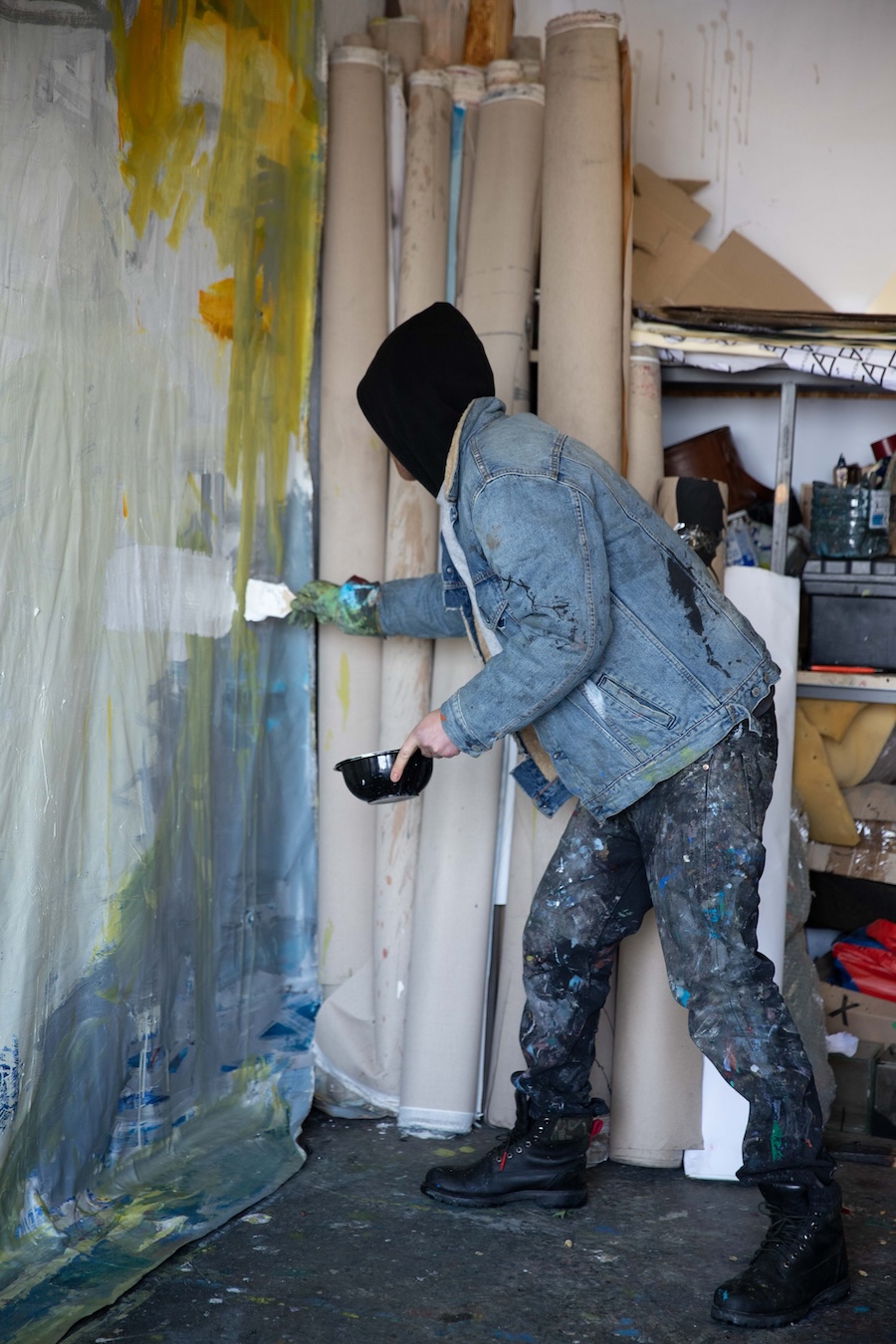 R: I am. One way or another, there is an artist’s presentation, the way he works. I have never thought about it, never considered my presentation, my path. For me, it has always been important …just create. Even this workshop that I have now is very small, but I don’t know all the work that is here. It’s like a laboratory; I come here, I have two hours, especially in winter when it’s very cold. I have a wall; I pull out a 2×3 m canvas and create a work: I experiment or already know what I will do. Then I roll it up, set it aside, and move on to a new canvas. At this stage, I wasn’t interested in presenting myself; I was interested in finding myself, searching, experimenting, discovering who I am—that’s my resource. As for presenting myself… of course, when no one sees the paintings, it seems: why make them? But it’s still important to me; I can’t do it any other way. Now I understand that they need to be shown, that there needs to be a conversation about them—that’s the next step.