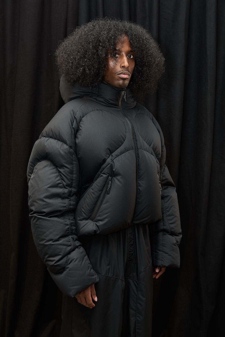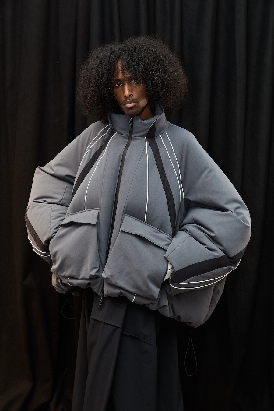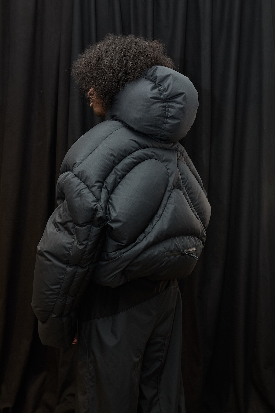 Elisabet’s creative journey for this season began with a thoughtful reflection on what truly matters in fashion, the art of selection and refinement over mere excess. Collaborating with the UK-based 360 Group, she honed her signature ultra-exaggerated design language, creating voluminous coats that envelop the wearer in comfort while allowing for freedom of movement. This collection showcases puffers with organically curved shapes, innovative features like dual-access pockets, and adjustable hems, ensuring that functionality harmonises with style.