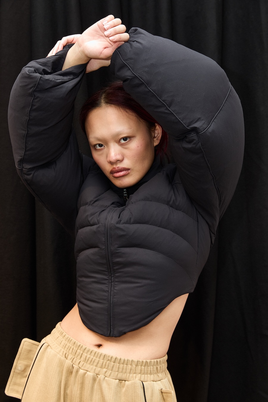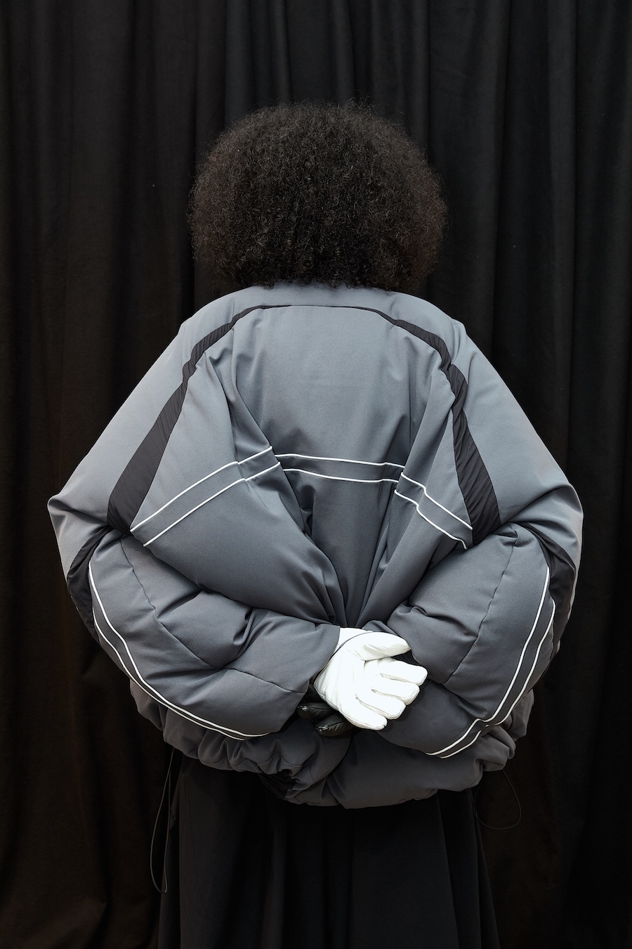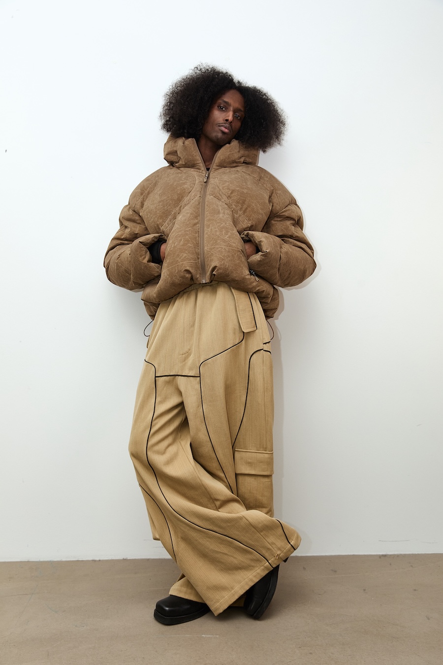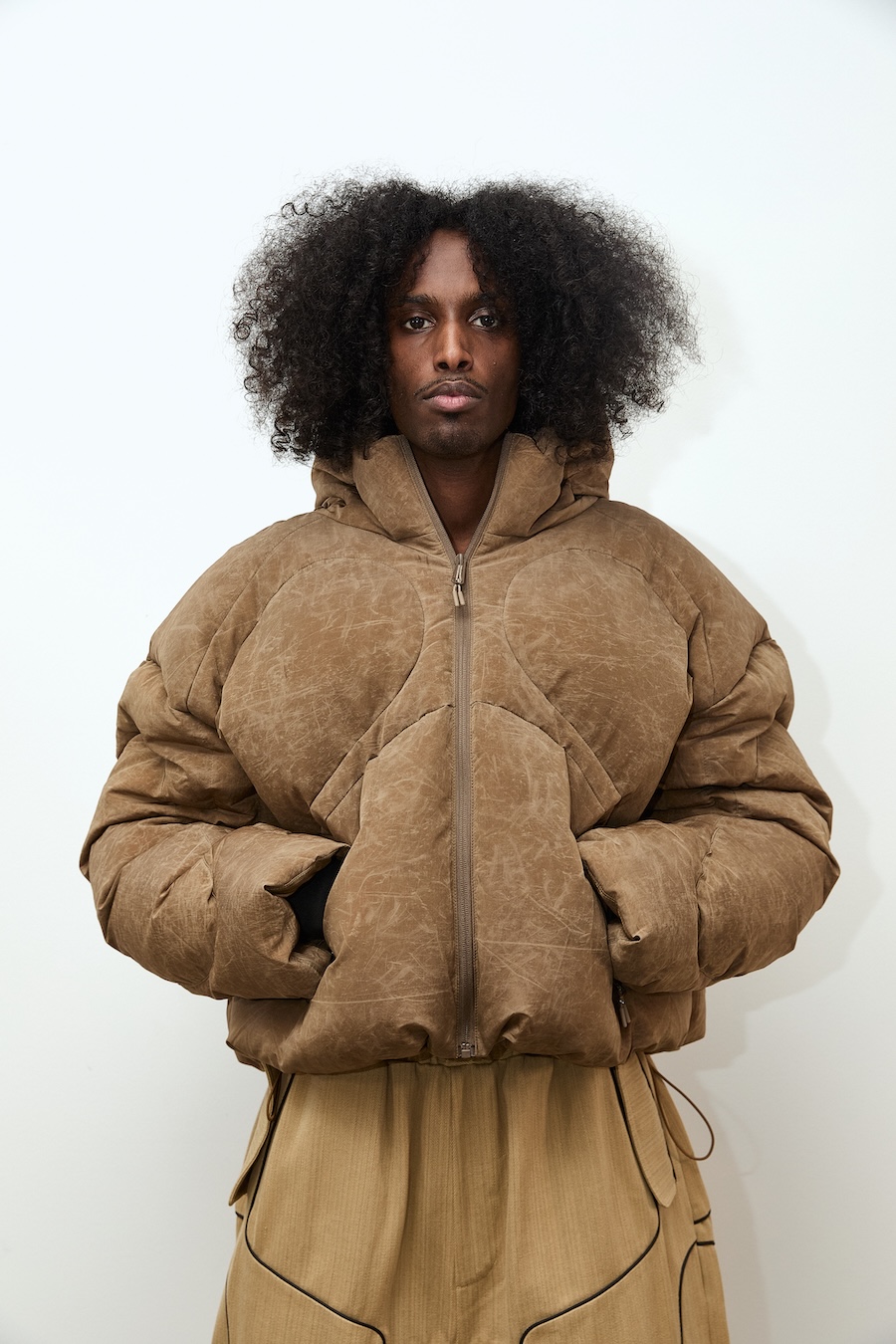 Elisabet’s creative journey for this season began with a thoughtful reflection on what truly matters in fashion, the art of selection and refinement over mere excess. Collaborating with the UK-based 360 Group, she honed her signature ultra-exaggerated design language, creating voluminous coats that envelop the wearer in comfort while allowing for freedom of movement. This collection showcases puffers with organically curved shapes, innovative features like dual-access pockets, and adjustable hems, ensuring that functionality harmonises with style.