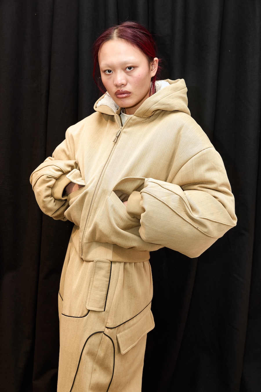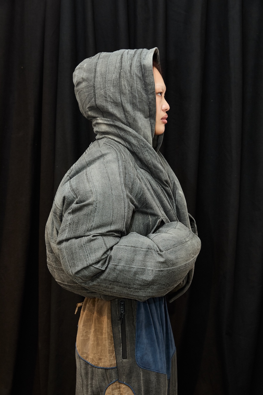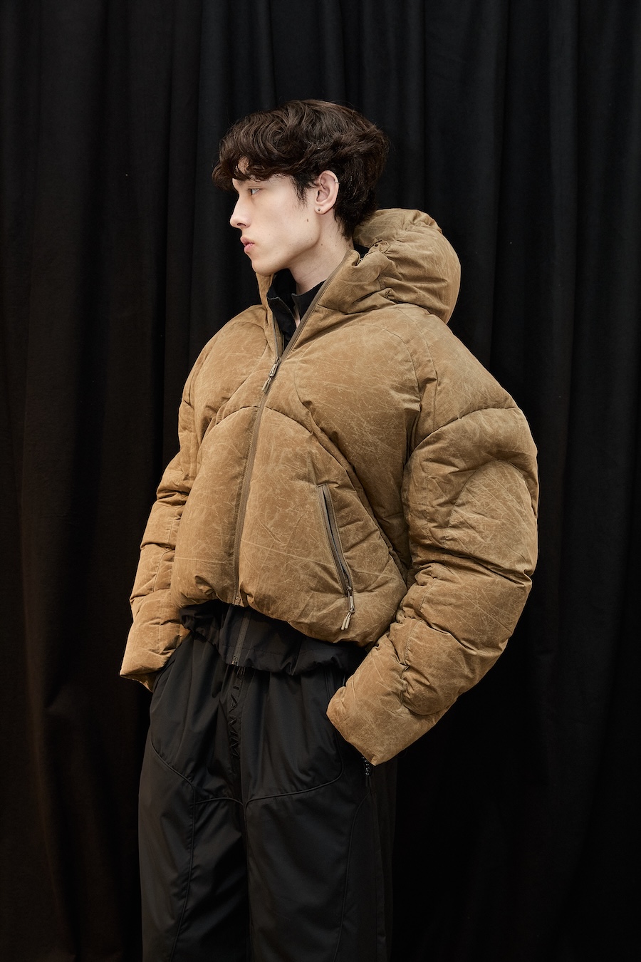 Since my early career, I’ve always loved outerwear, or other categories like denim, the fields where fabrication really matters. To design and develop a good jacket, you need to know how to work in layers and how to combine. I lived and worked in China in the past, learning about manufacturing, and I developed teams to supply larger brands with outerwear. I created an outerwear brand before STAMM, one that still exists, but might have changed today. With STAMM, I went all the way back to my love for my father’s big VOLVO trucker jackets. I’ve created so many jackets that I might have lost a bit of appetite in the past years, until I came to this new process. Now that I’m not selling the collection myself and not being an octopus handling various freelancers for shows, I somehow fell in love with my work again. Now I look at this and wish I could go even deeper and keep falling in love with it over and over again.
