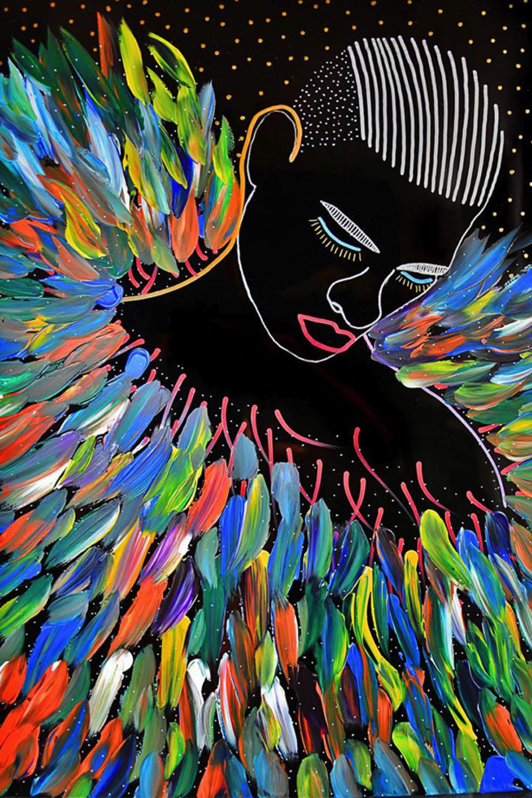 Yermine: I’ve been researching and experimenting to push the boundaries of my style: new formats and new materials to keep expanding the diversity of my work. I’m also making design objects with wood and ceramics and Glicée prints.