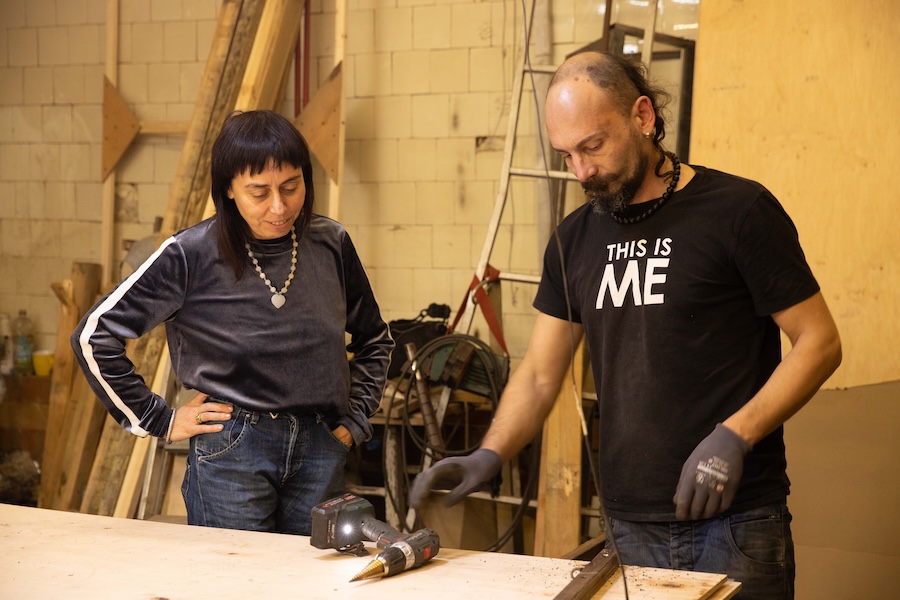After living 5 days in a hotel, we eventually found a house that could serve both as a living space and a workshop. The hotel didn’t allow us to work. Once my mom was safely abroad, we began thinking about what we could make to help and organise some assistance. Of course, we didn’t take any tools from the studio. We only took basic things: a computer, documents, since we thought we might have to walk 8 km because, at that time, taxis wouldn’t take us, our cars were on the Right Bank, and we lived on the Left. We planned to walk across the North Bridge. The idea was that we were looking for a place to work and live, and this house was available only because there was no electricity: a tree had fallen and severed the wires. We made an agreement with the owners, gave them money for a cable, and the next day, they restored the electricity. T