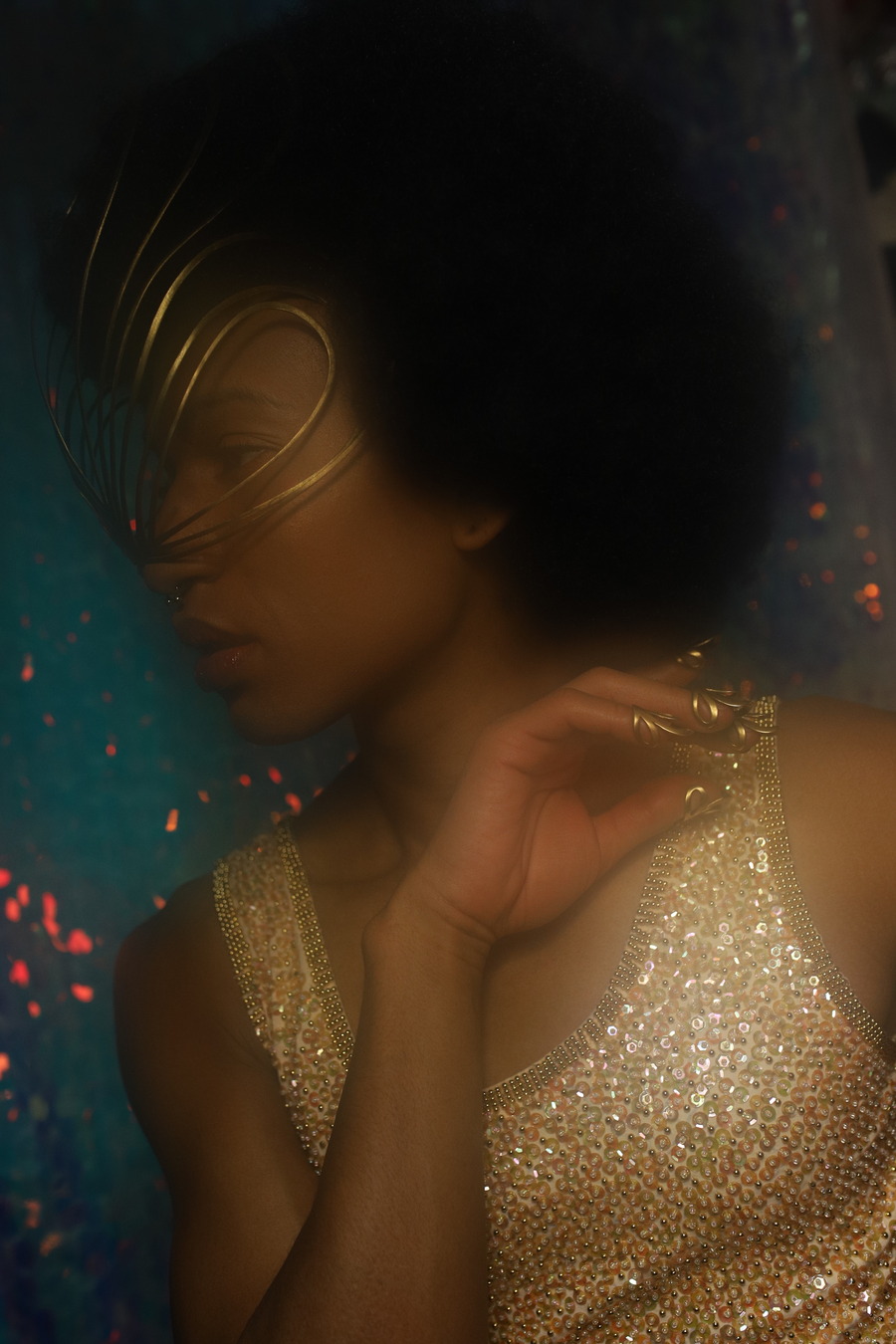 Both female artists are based in Berlin and are a magic dream team when it comes to collaborating with diverse artists, and musicians for various lookbooks, editorials and portrait shoots. The empowering beauty stretch in collaboration with Moodmatcher New York features strong headpieces and face jewellery as well as the signature vulva-inspired jewellery collection of Luise Zücker.