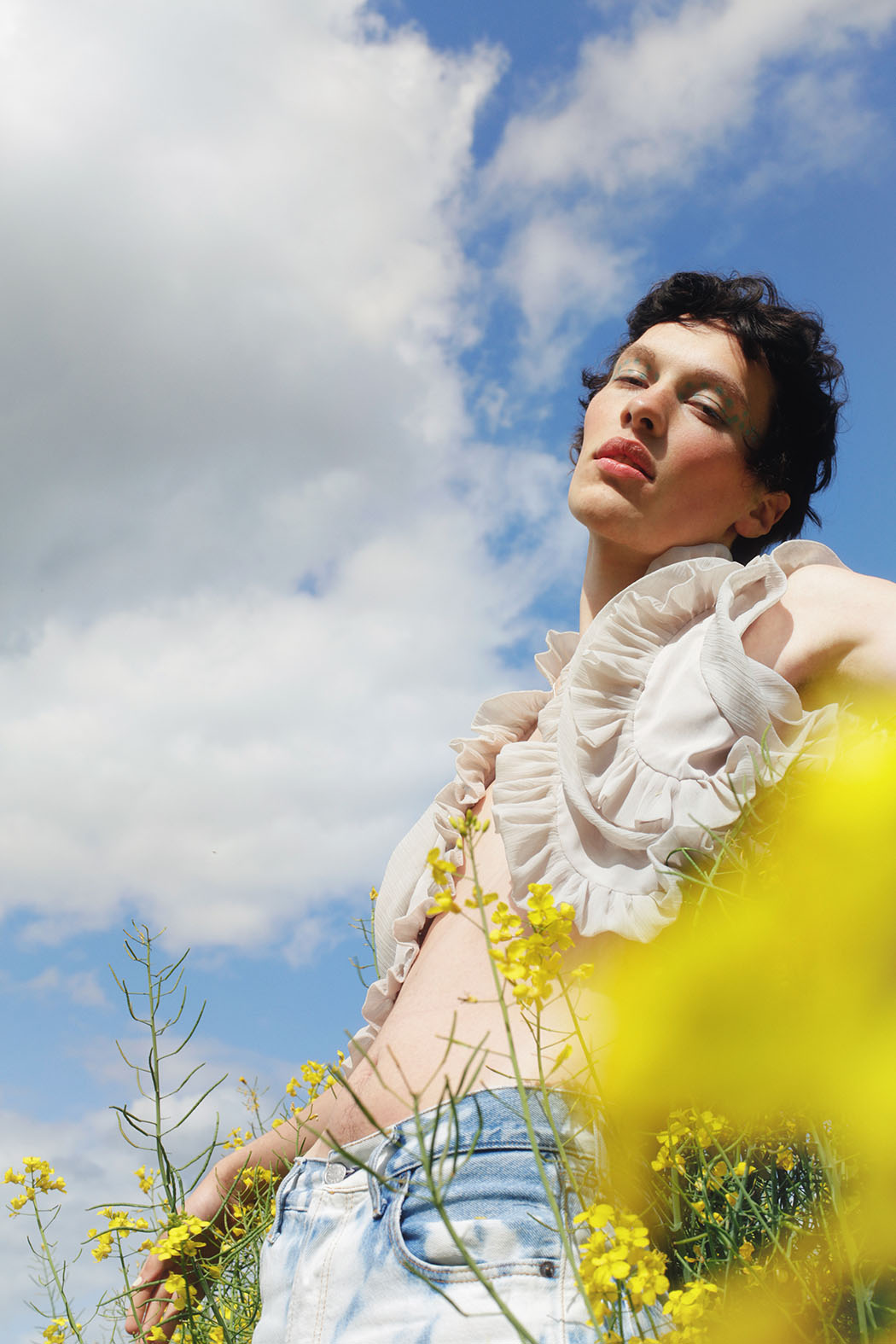 “In the heat of summer, surrounded by beautiful fields, near calming waters we took the time to discover feminine styles combined with striking make-up, intwining different eras and cultures to tell our story. Inspired by feeling free and uninhibited with a strong connection to nature. Vintage clothing transports us to a different time, giving us Woodstock vibes.” *Michaela Wissing