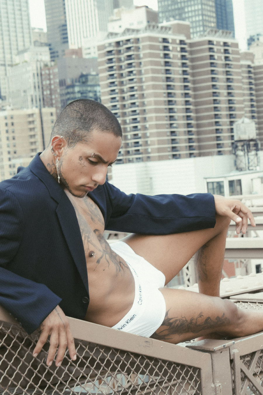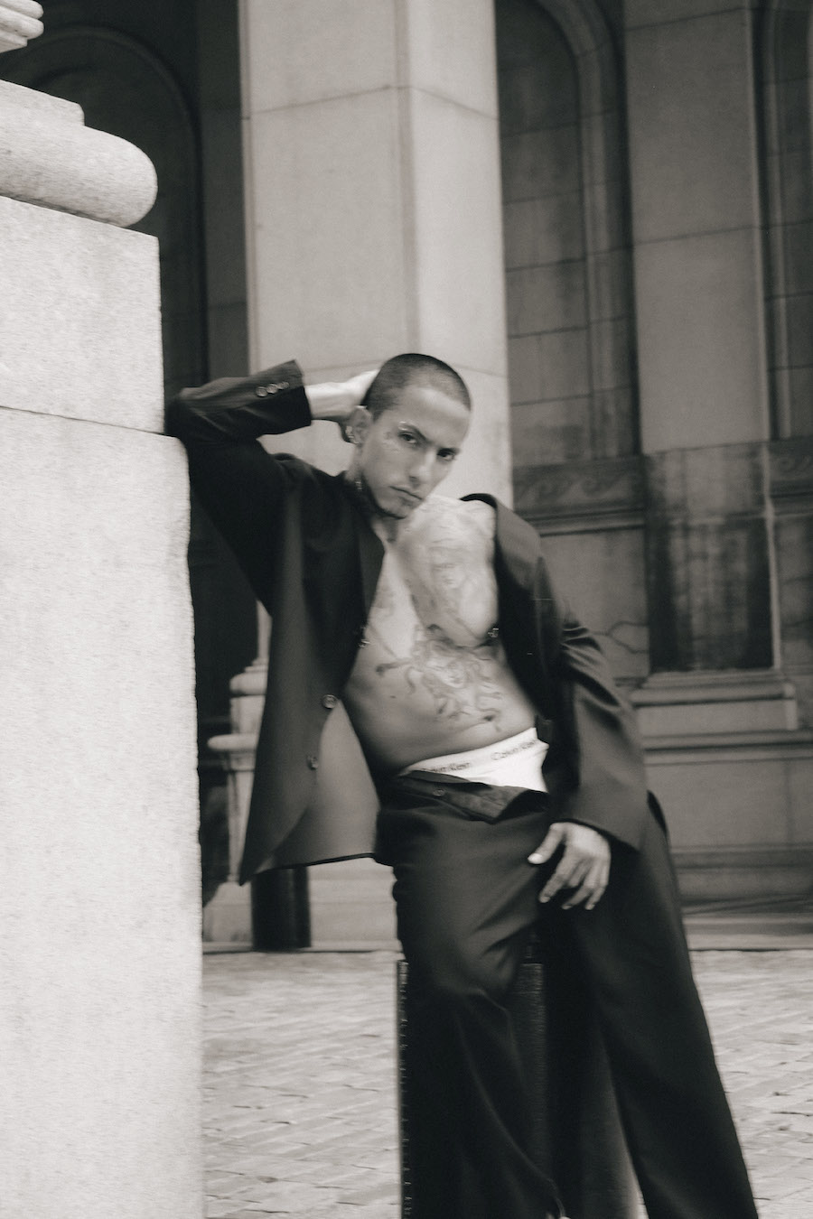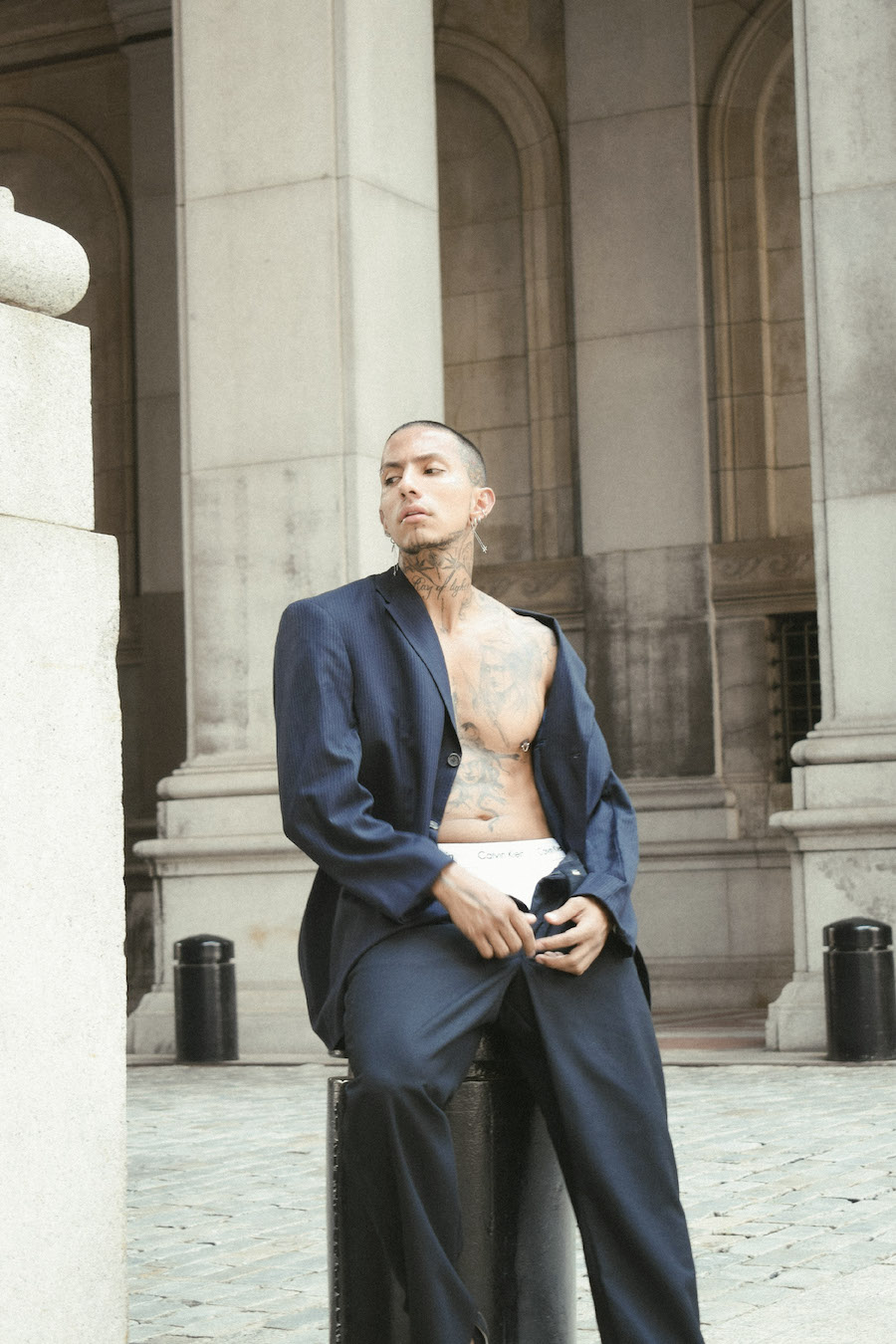 A KALTBLUT exclusive. Photography by Elys Berroteran. Starring Daiky Gamboa. The indomitable Gamboa, artist, stylist and creative director of the Medellín-born singer Karol G and other artists. He poses exclusively walking the streets of New York showing how free and open he is, wearing pieces by Esmeregildo Zegna, Calvin Klein and Givenchy.