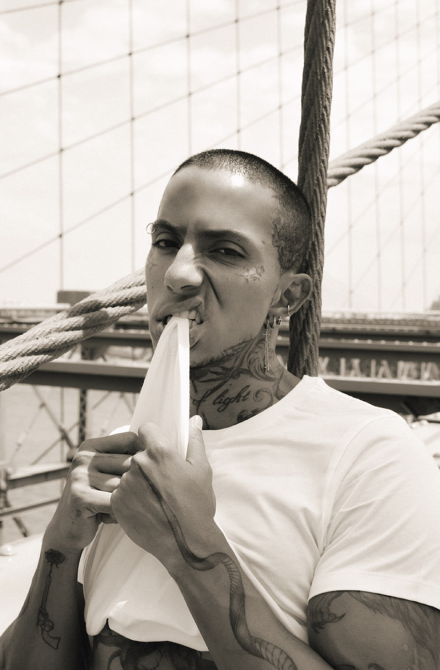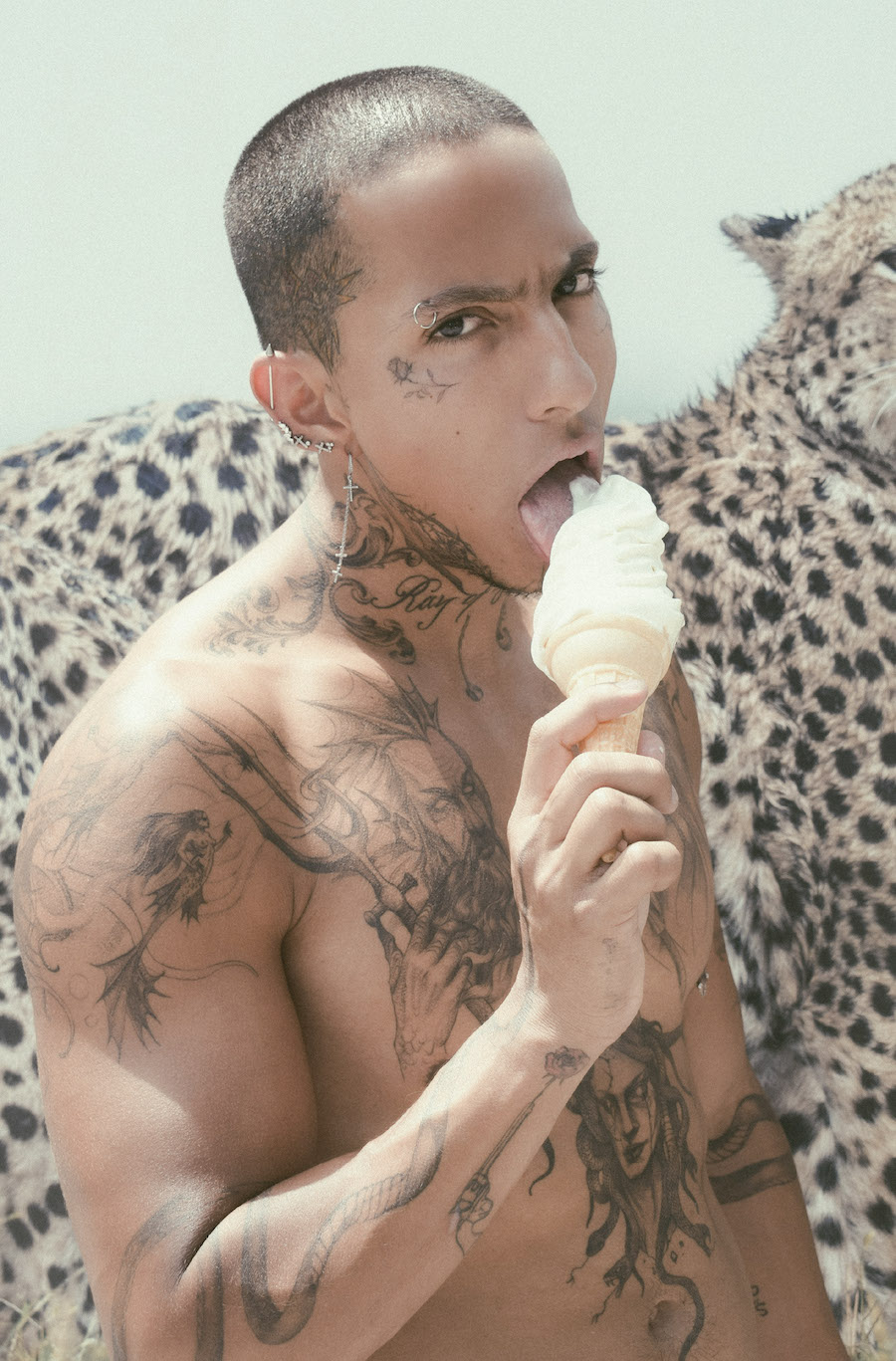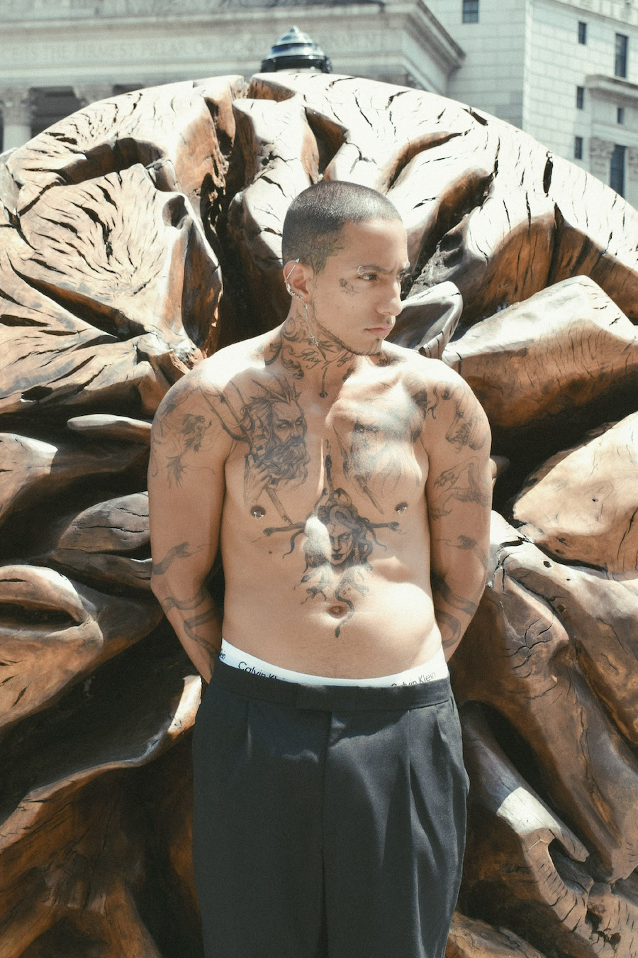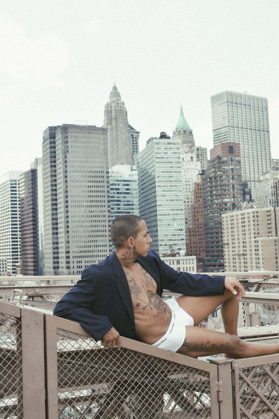 A KALTBLUT exclusive. Photography by Elys Berroteran. Starring Daiky Gamboa. The indomitable Gamboa, artist, stylist and creative director of the Medellín-born singer Karol G and other artists. He poses exclusively walking the streets of New York showing how free and open he is, wearing pieces by Esmeregildo Zegna, Calvin Klein and Givenchy.