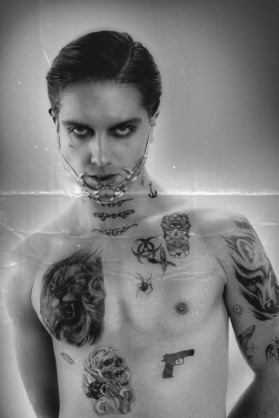 A KALTBLUT exclusive. Styling & photography by Stephania Burgos. The model is Blas Forese. Grooming & special effects by Peter Snow. Fashion by Gustavo Helguera, Zamochkova Studio, Non Nude, M2K and Prada Eyewear.
