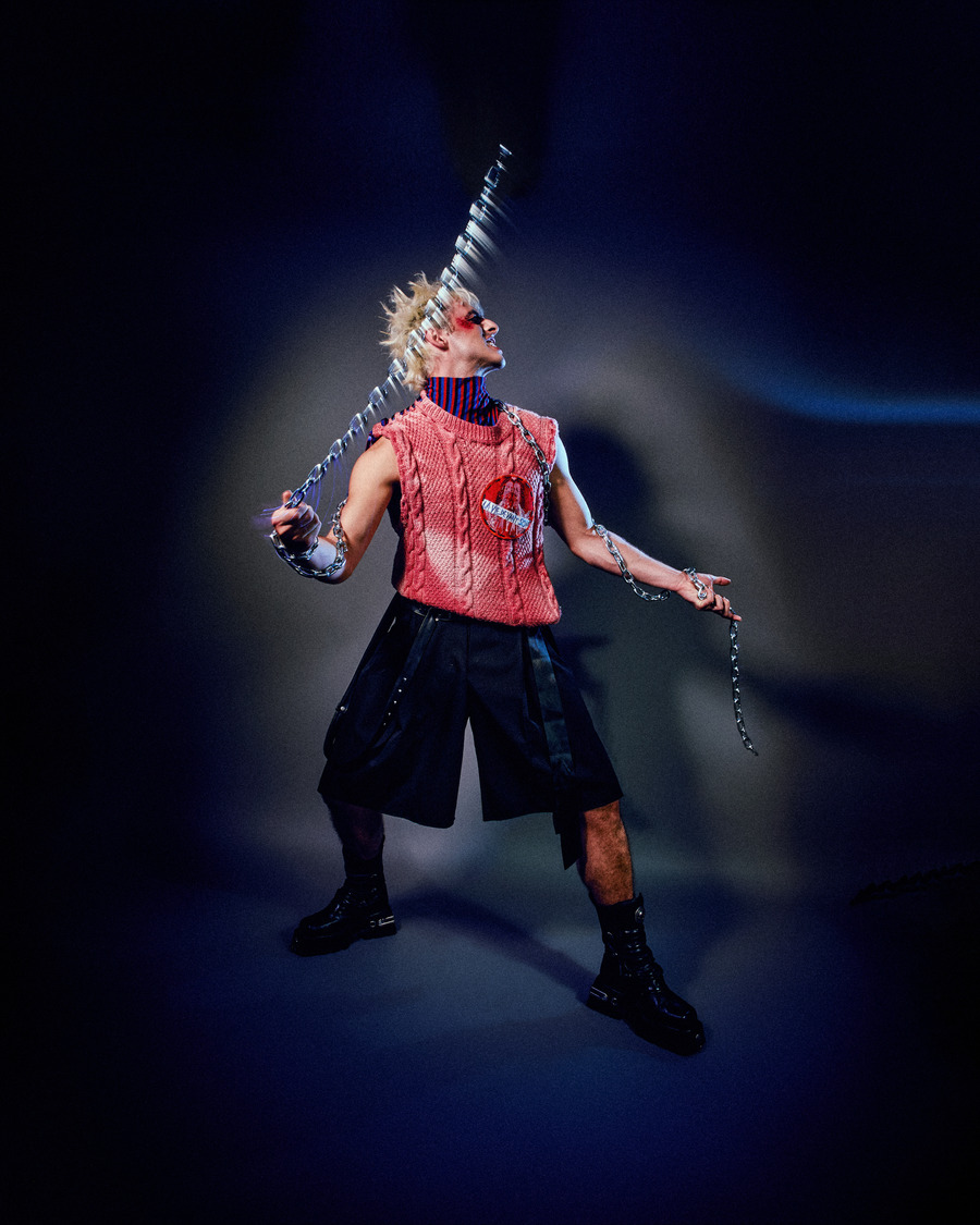 This editorial delves into the complex facets of human personality, exploring themes such as gender identity, desire, madness, and self-love. These questions form the foundation of the subject’s transformations, embodying an internal conflict between light and shadow, strength and fragility. The constructed outfits, made of leather, denim and metal, symbolize resilience and vulnerability. The character’s fluid identity blurs the boundaries between masculine and feminine, illustrating a constant quest for self-reinvention. Inspired by the worlds of Tim Burton, David Fincher, and the Wachowski sisters, this project examines the limits between reality and imagination, reflecting on the fluidity of being.