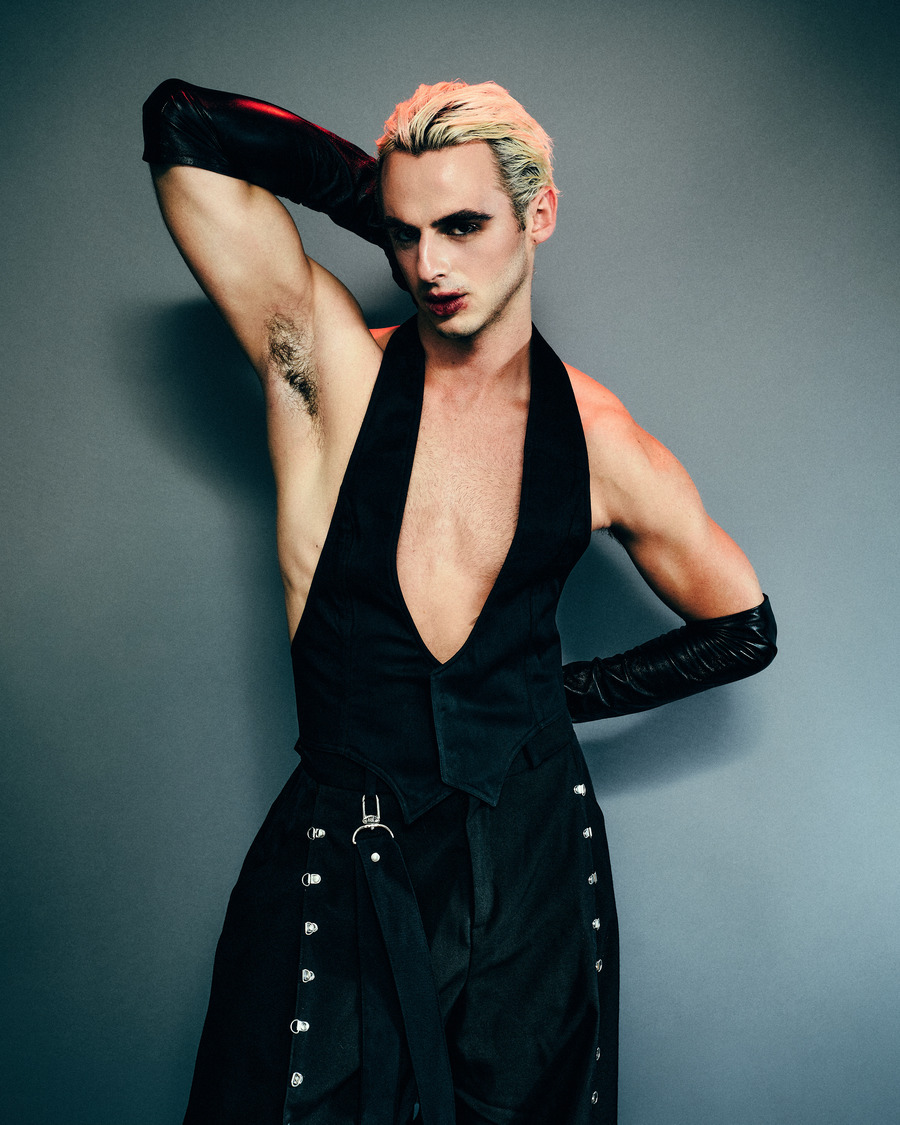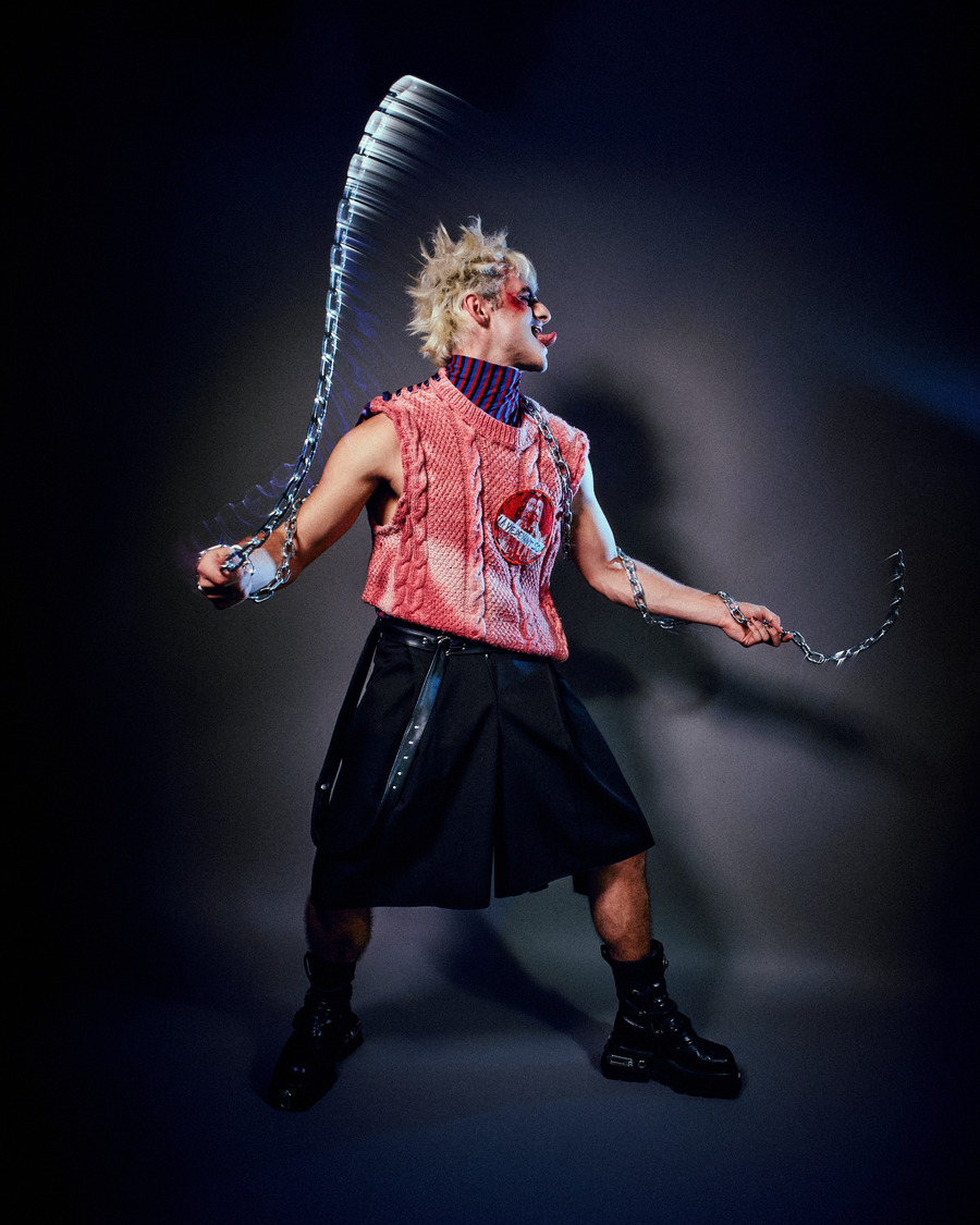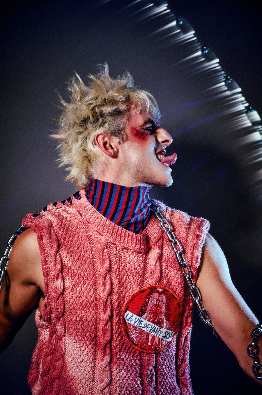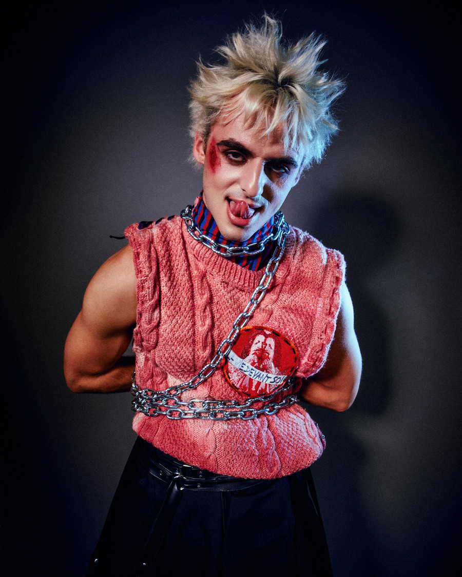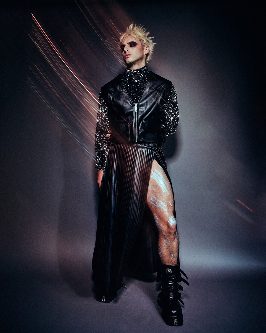 This editorial delves into the complex facets of human personality, exploring themes such as gender identity, desire, madness, and self-love. These questions form the foundation of the subject’s transformations, embodying an internal conflict between light and shadow, strength and fragility. The constructed outfits, made of leather, denim and metal, symbolize resilience and vulnerability. The character’s fluid identity blurs the boundaries between masculine and feminine, illustrating a constant quest for self-reinvention. Inspired by the worlds of Tim Burton, David Fincher, and the Wachowski sisters, this project examines the limits between reality and imagination, reflecting on the fluidity of being.