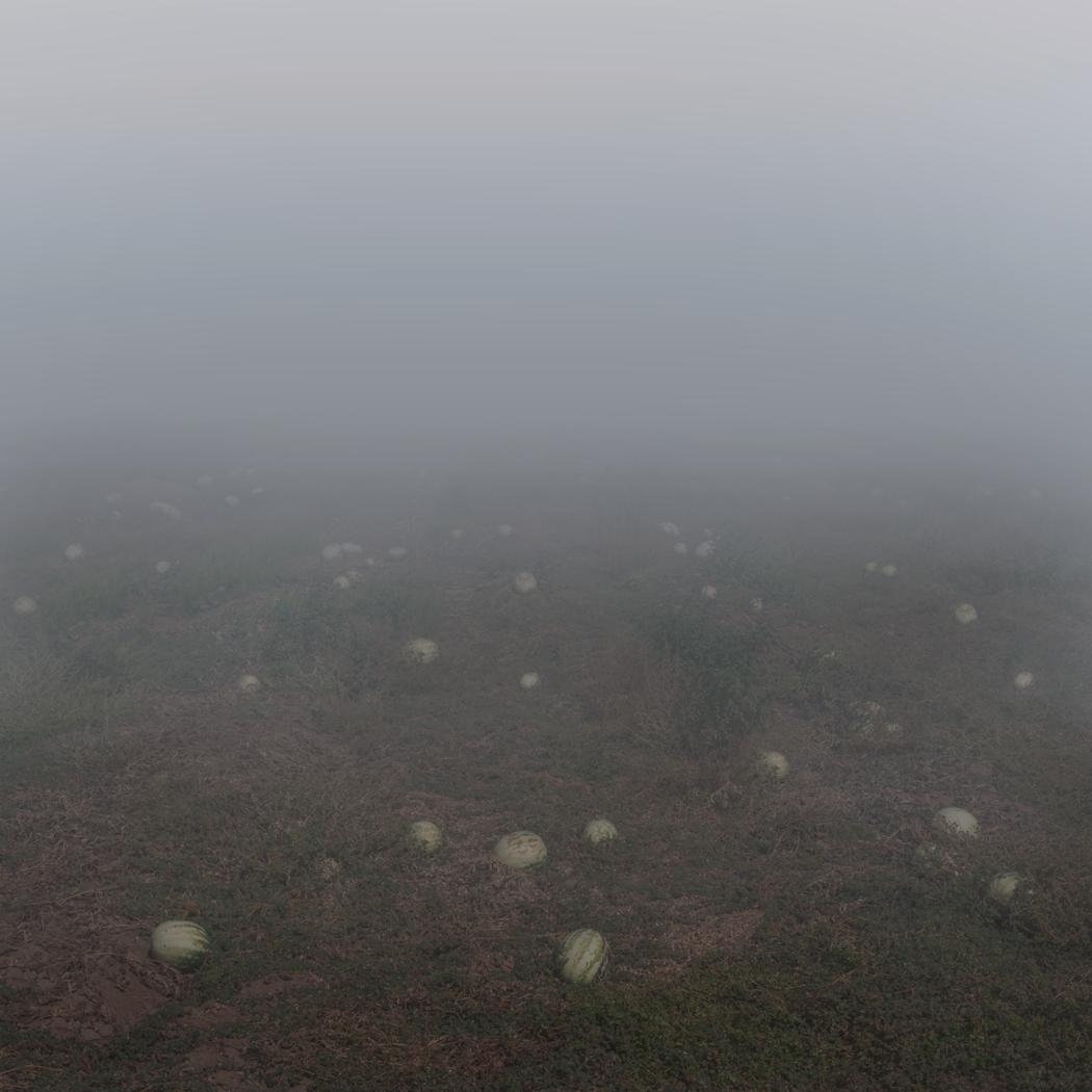 Empty highways, solar panel fields, constructions left unfinished, rotten watermelons and torn flags seem stuck in an intermediate state, portraying the current situation, like distorted symbols of a bygone era of growth.