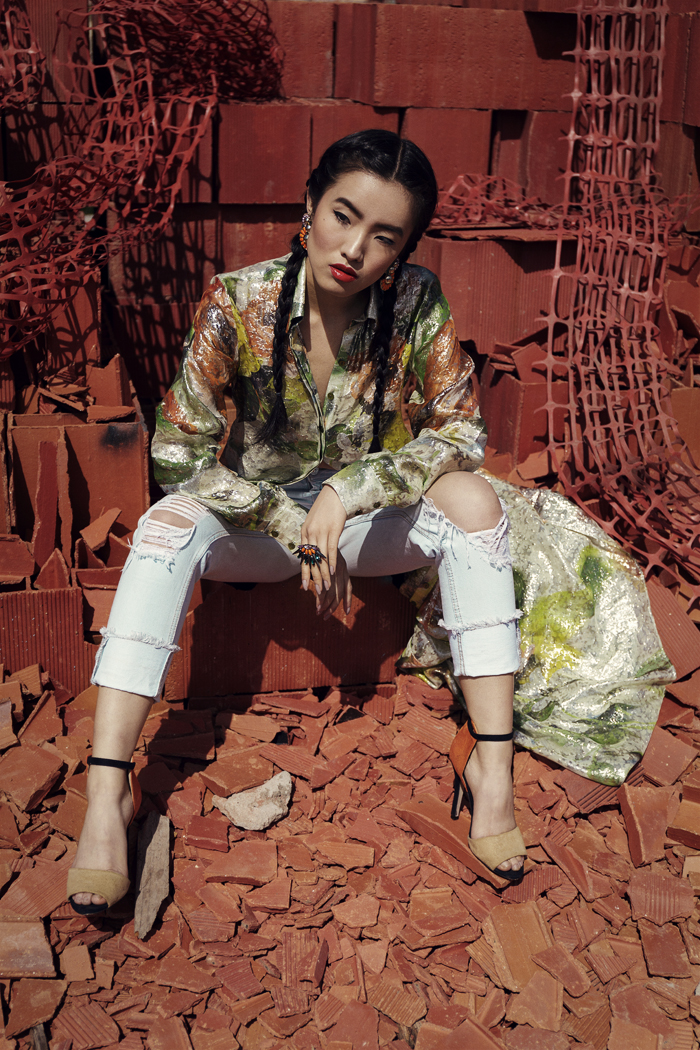 A KALTBLUT exclusive womenswear editorial. Photographer Juan Chu captured Elena Li Chen for us. Make up and hair by Sandra Soriano. Fashion Designer: Enma Móz, Shoes by Zara, Pierre Hardy. Jewelry by Anton Heunis.