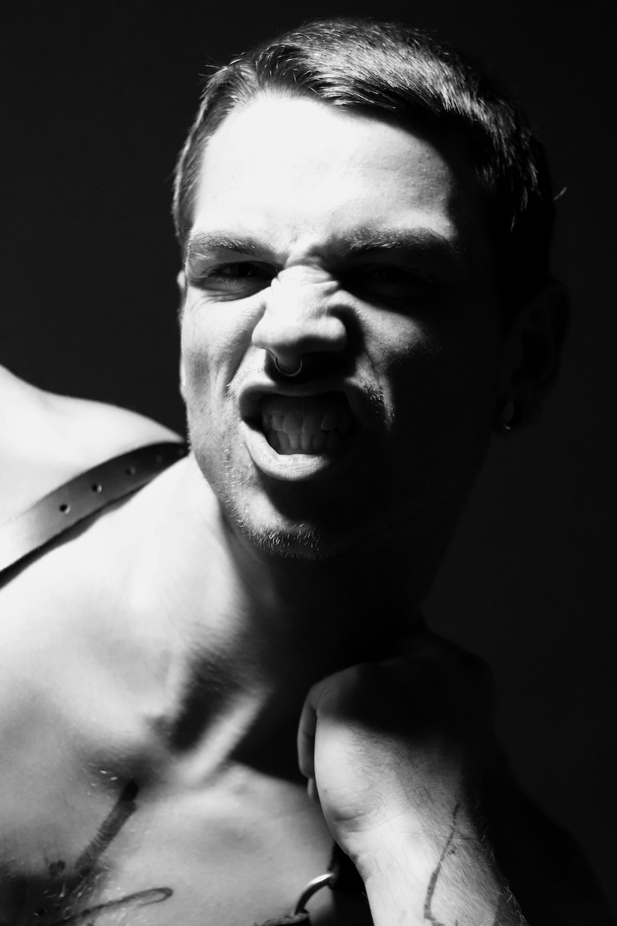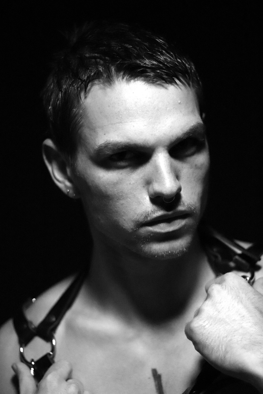 A KALTBLUT exclusive. Photography by Blaž Čuk. The model is Jonas Posorski, signed at True Face Agency. All fashion items by Obectra. Blaž Čuk, born in Slovenia, is the founder of the Berlin-based fashion brand Obectra. stands at the intersection of sustainable fashion, urban culture, and subversive art. With a distinctive vision that blends innovative design with daring aesthetics, Čuk is redefining contemporary clothing while drawing inspiration from Berlin’s vibrant techno underground scene and the BDSM subculture.