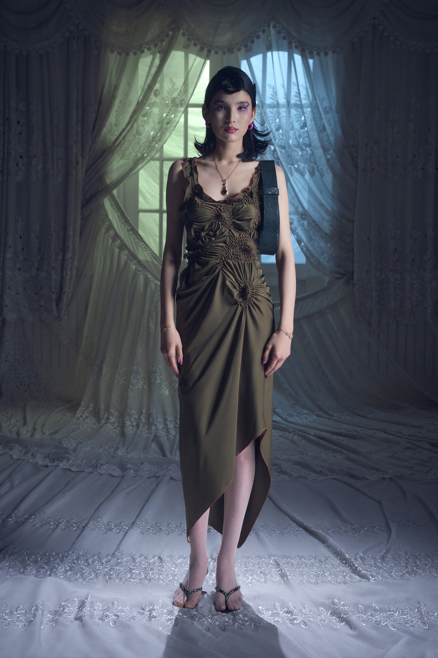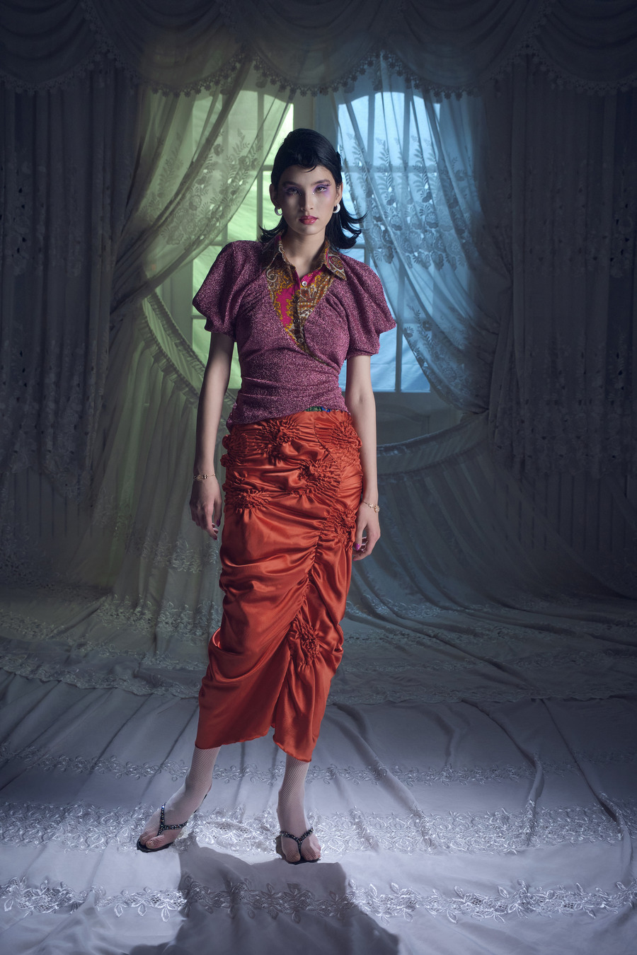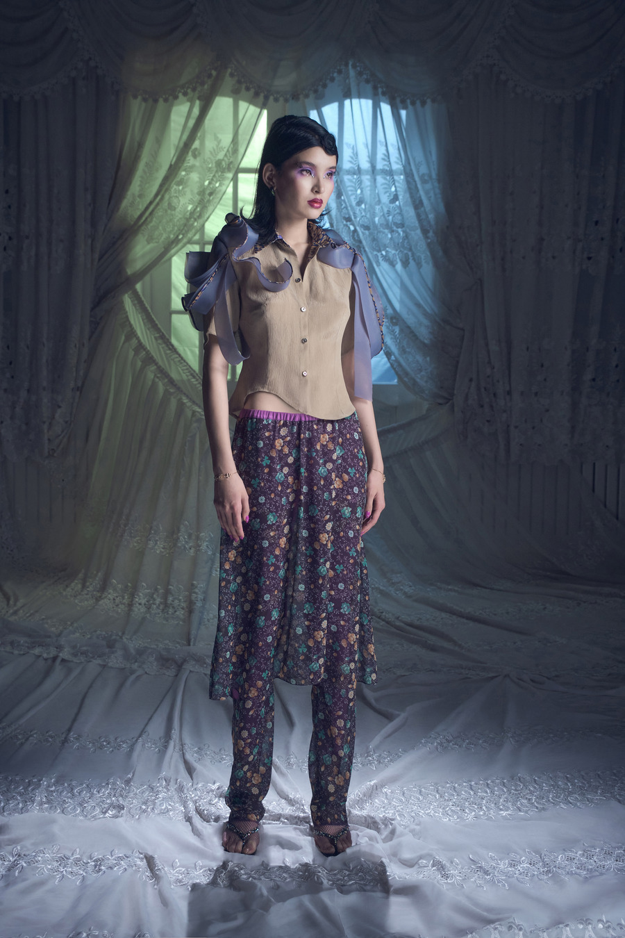 For her latest collection, Jenia Kim continues to explore the allure of Uzbekistani women and their expressive nature amidst a globalized world. Drawing inspiration from her time spent in Tashkent, the capital of Uzbekistan, Jenia has witnessed the transformation of the authentic local style into something more refined yet enduring.