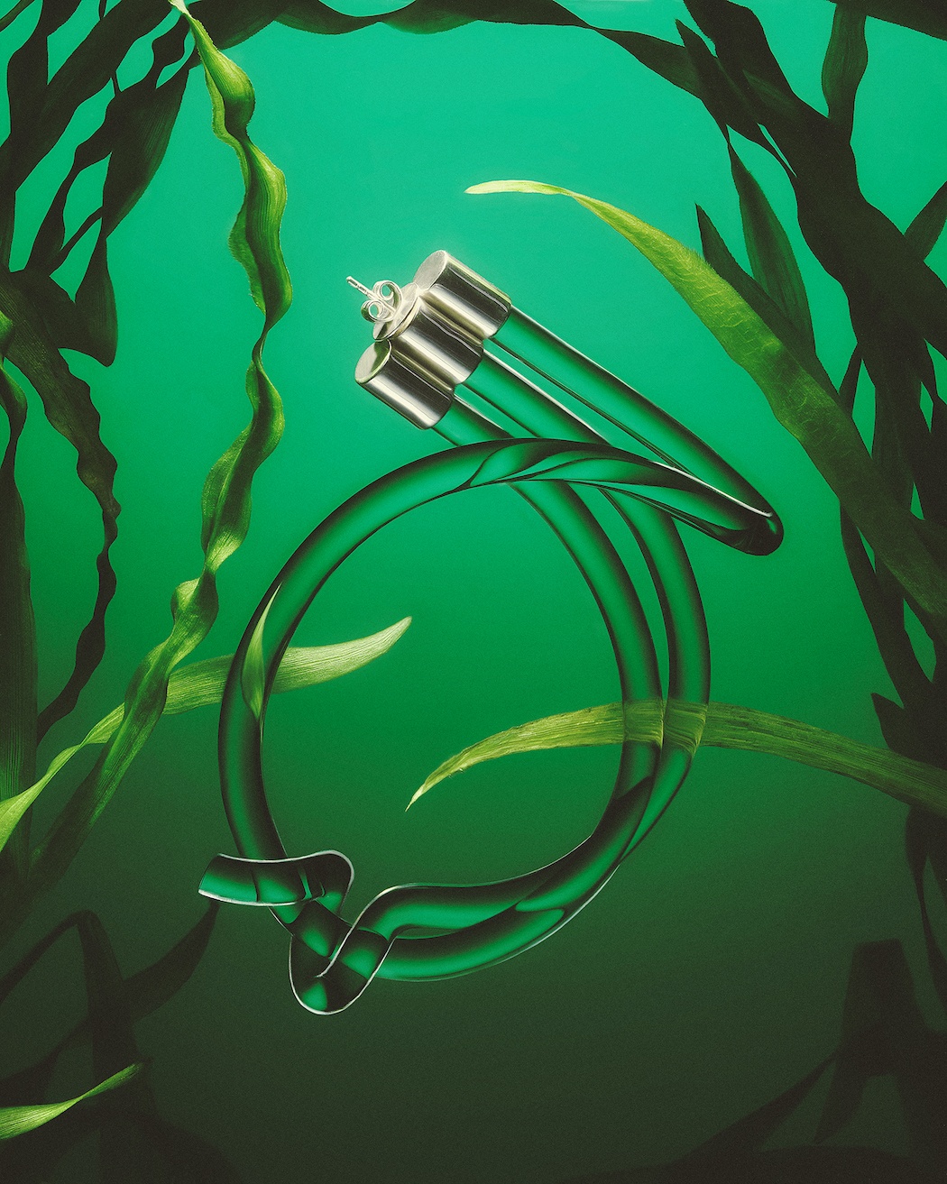 This series of images has been developed by Romain Roucoules and Anna Piasek. The images represent perfectly the collection and each piece is shown in a dedicated underwater universe.”