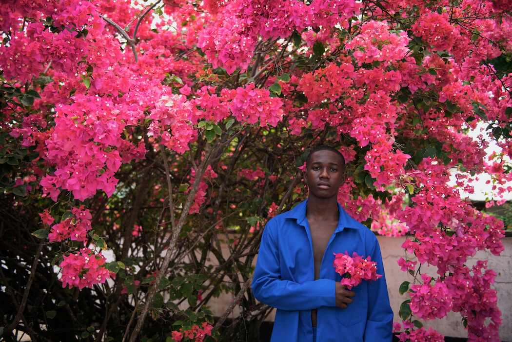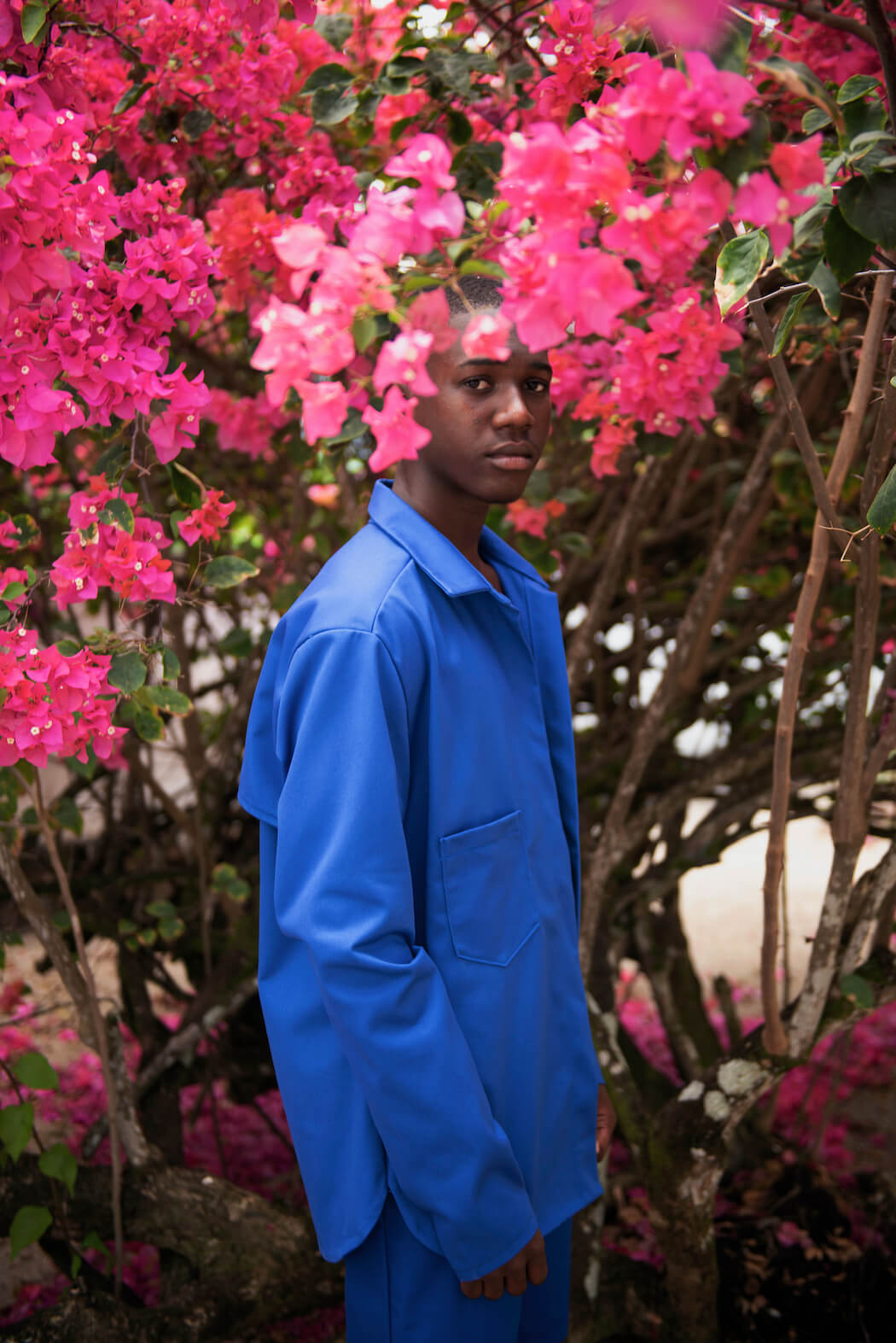 “One year ago I traveled to Surinam after a long time to visit my aunt and to shoot these designs I made. On the 4th day of my stay, the first Covid-19 infection in the country was diagnosed and the lockdown was immediately initiated. Unfortunately, I had to return home earlier with a repatriation flight, but the day before I left, we still managed to do a shoot with the designs I brought with me. Thanks to my aunt we could arrange everything. We formed a small team and shot these photographs right next to her house. The Bougainvillea flower symbolizes protection, spiritual connection, and peace. Something that is needed in these times.