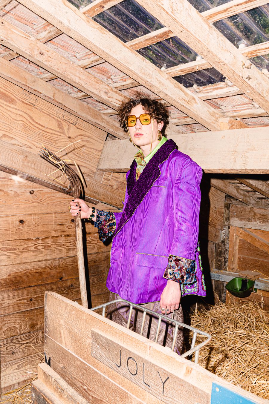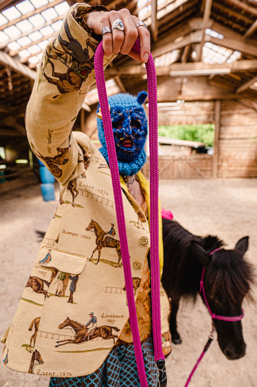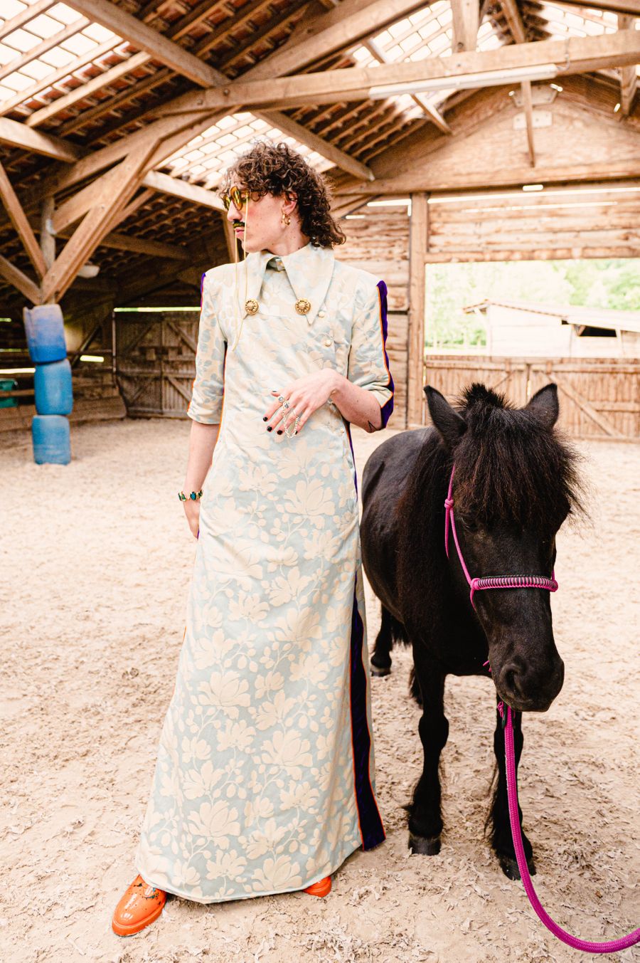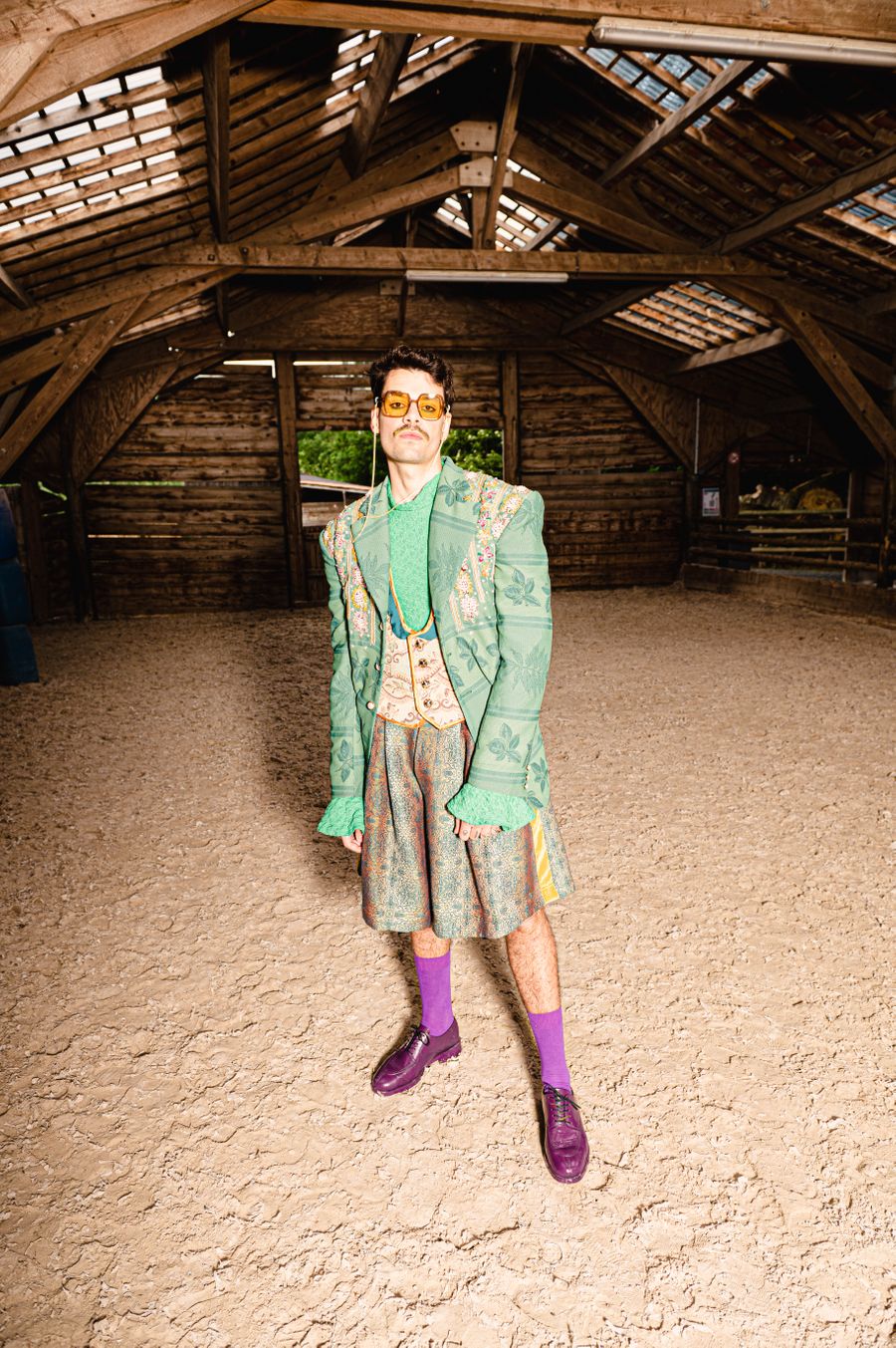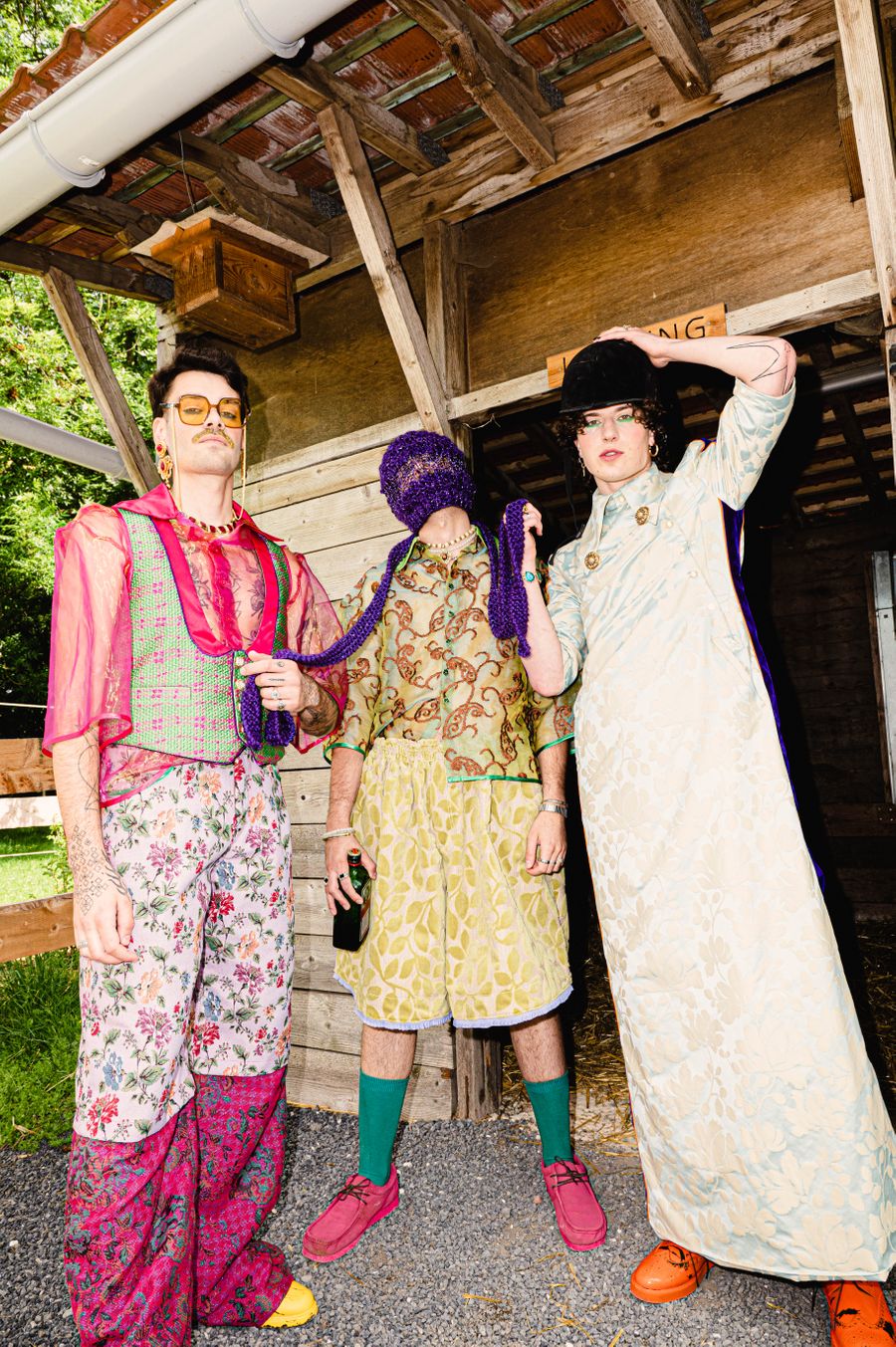 “By humorously mixing old-fashioned fabrics, colourful ornaments and hazardous product details in a maximalist, kitsch and baroque atmosphere, I wanted to make this collection and its presentation a lively entertainment.