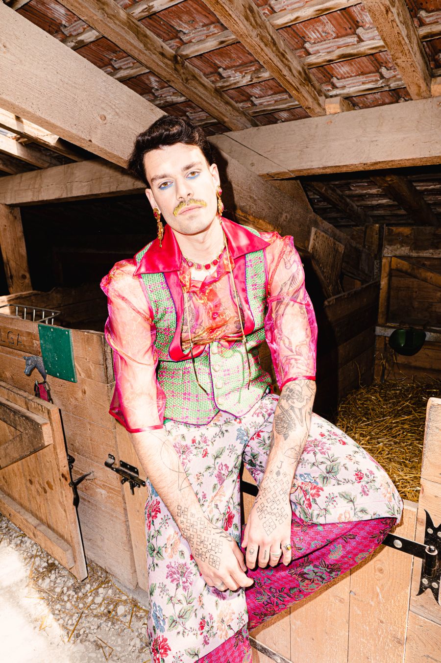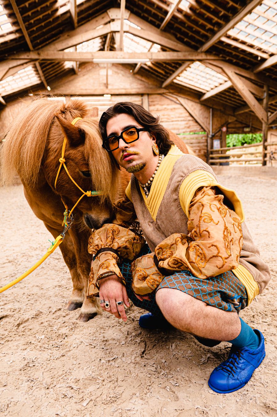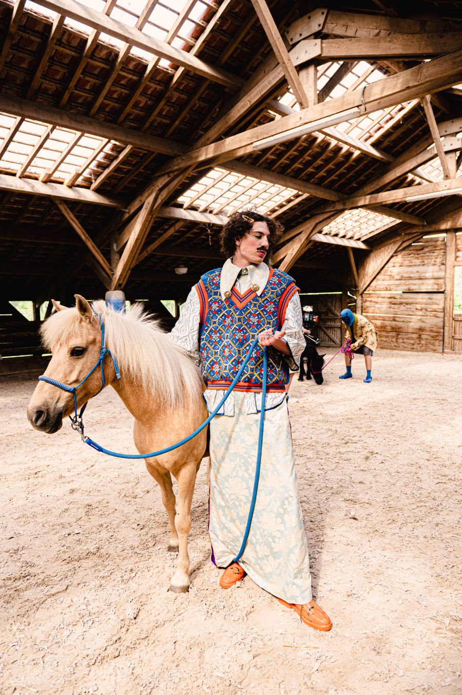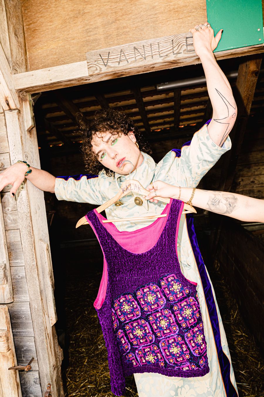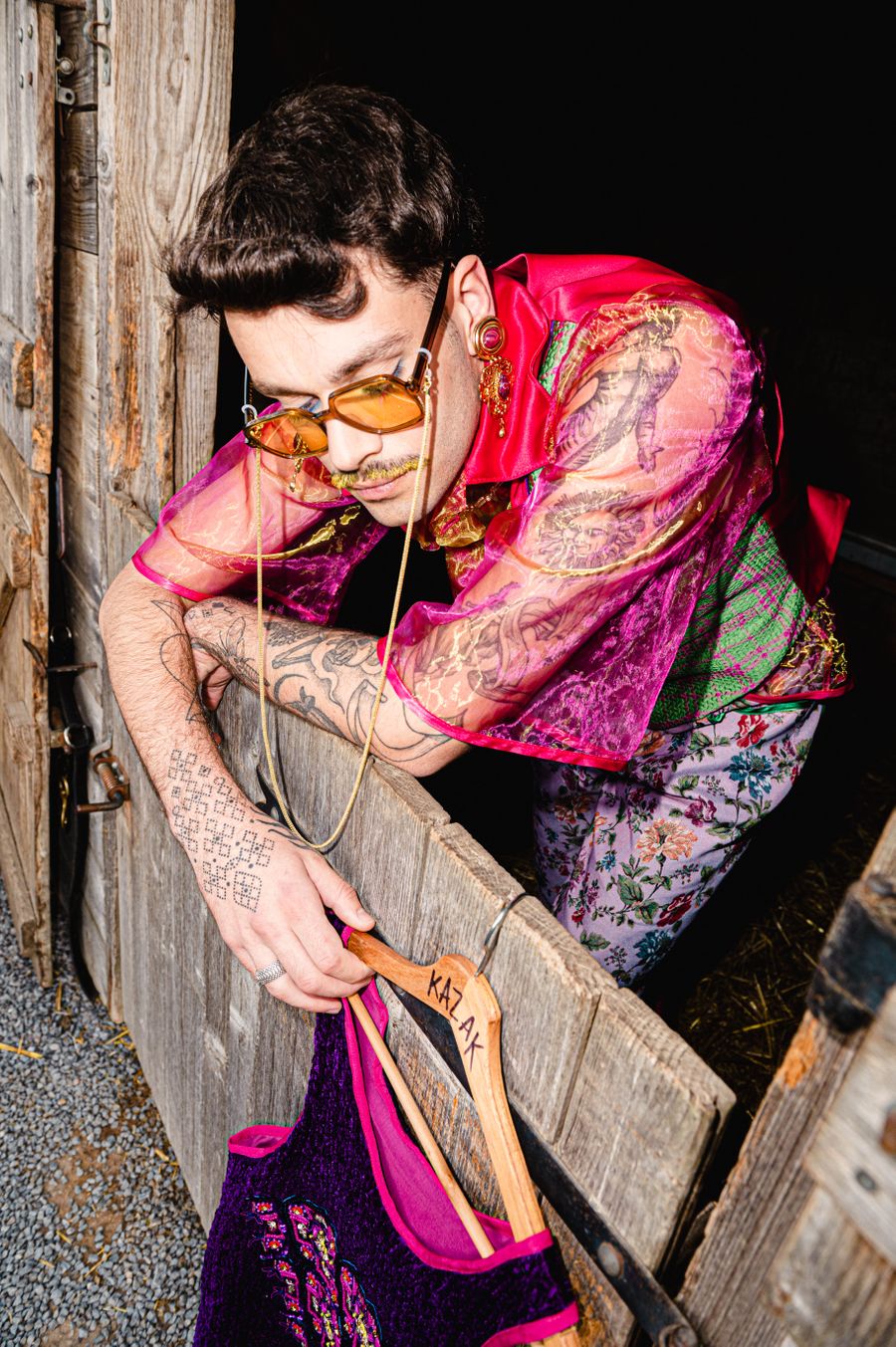 “By humorously mixing old-fashioned fabrics, colourful ornaments and hazardous product details in a maximalist, kitsch and baroque atmosphere, I wanted to make this collection and its presentation a lively entertainment.