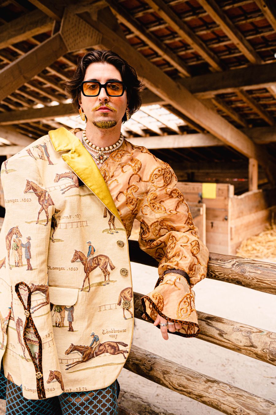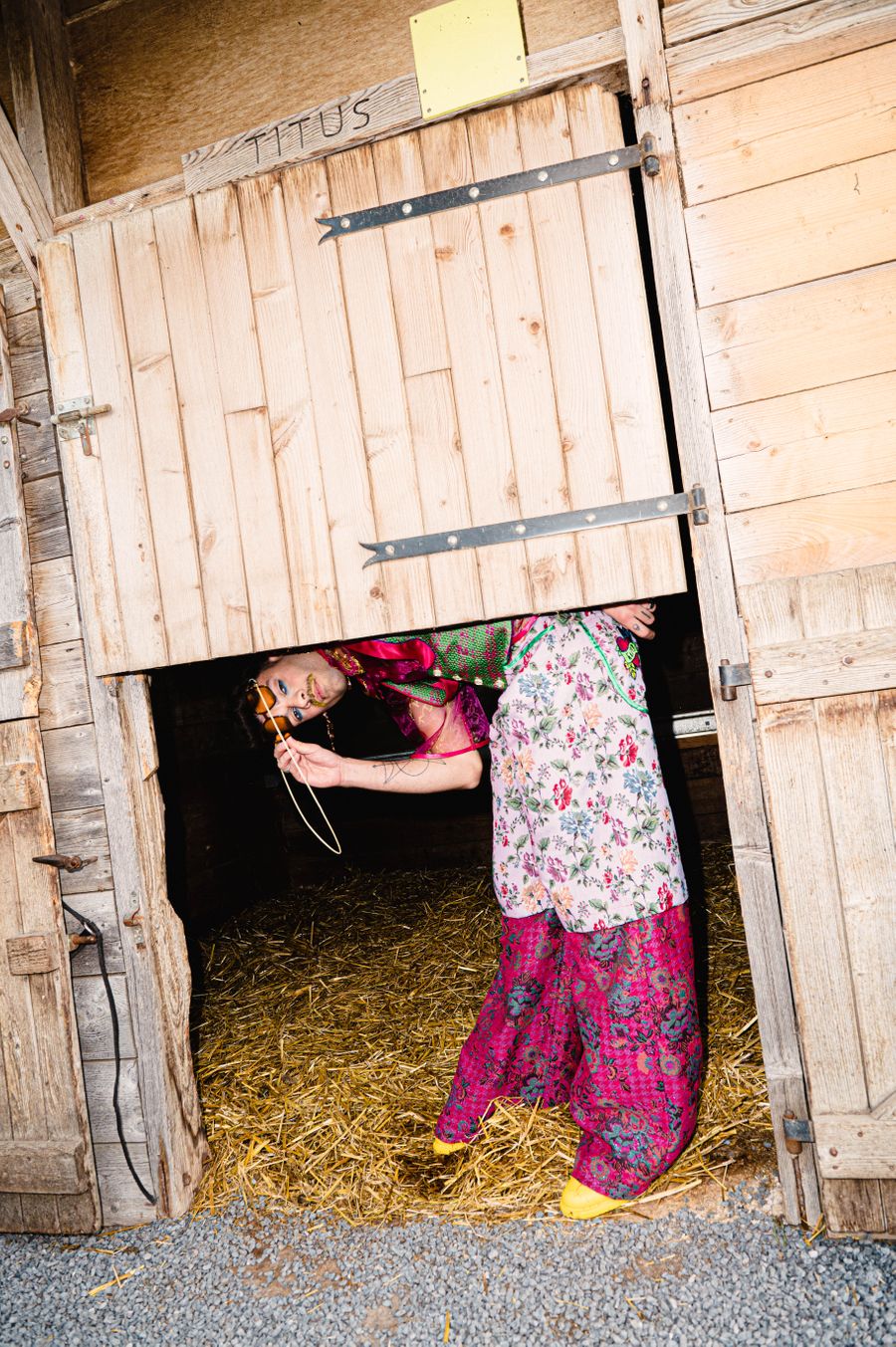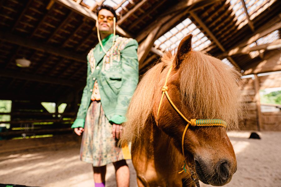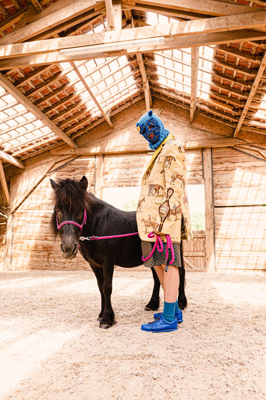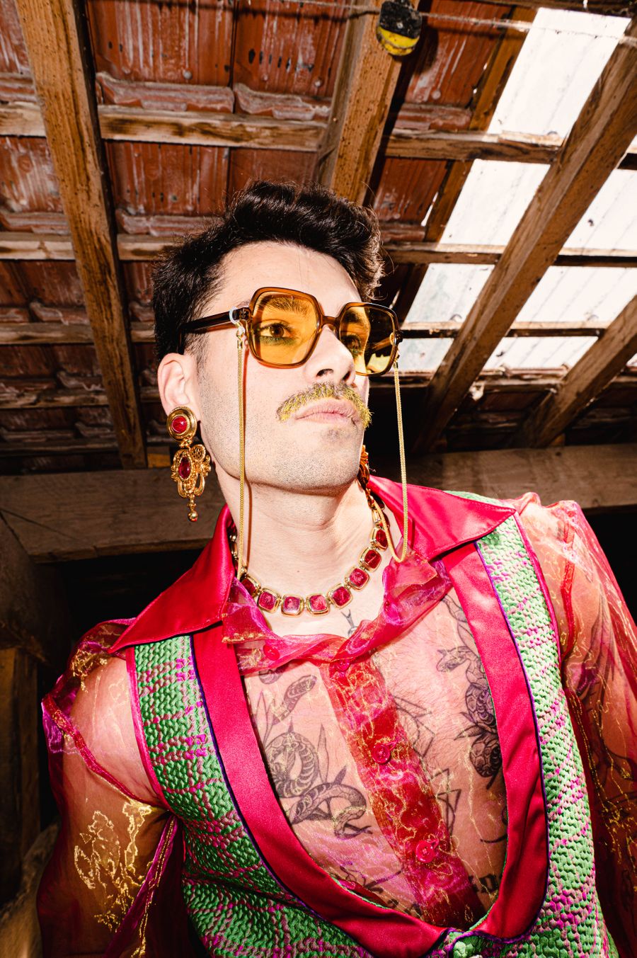“By humorously mixing old-fashioned fabrics, colourful ornaments and hazardous product details in a maximalist, kitsch and baroque atmosphere, I wanted to make this collection and its presentation a lively entertainment.