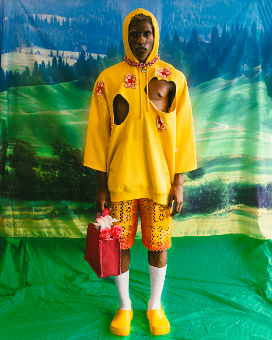 Treading the delicate balance between technical materials and workwear influences, this collection pays homage to the remarkable artistry of gardening. With floral motifs taking centre stage, the designs celebrate the inherent beauty of flowers in all their forms – whether abundantly layered, intricately woven, or voluminously draped. The ethereal charm of grassy landscapes finds new life through exquisite embroidery.