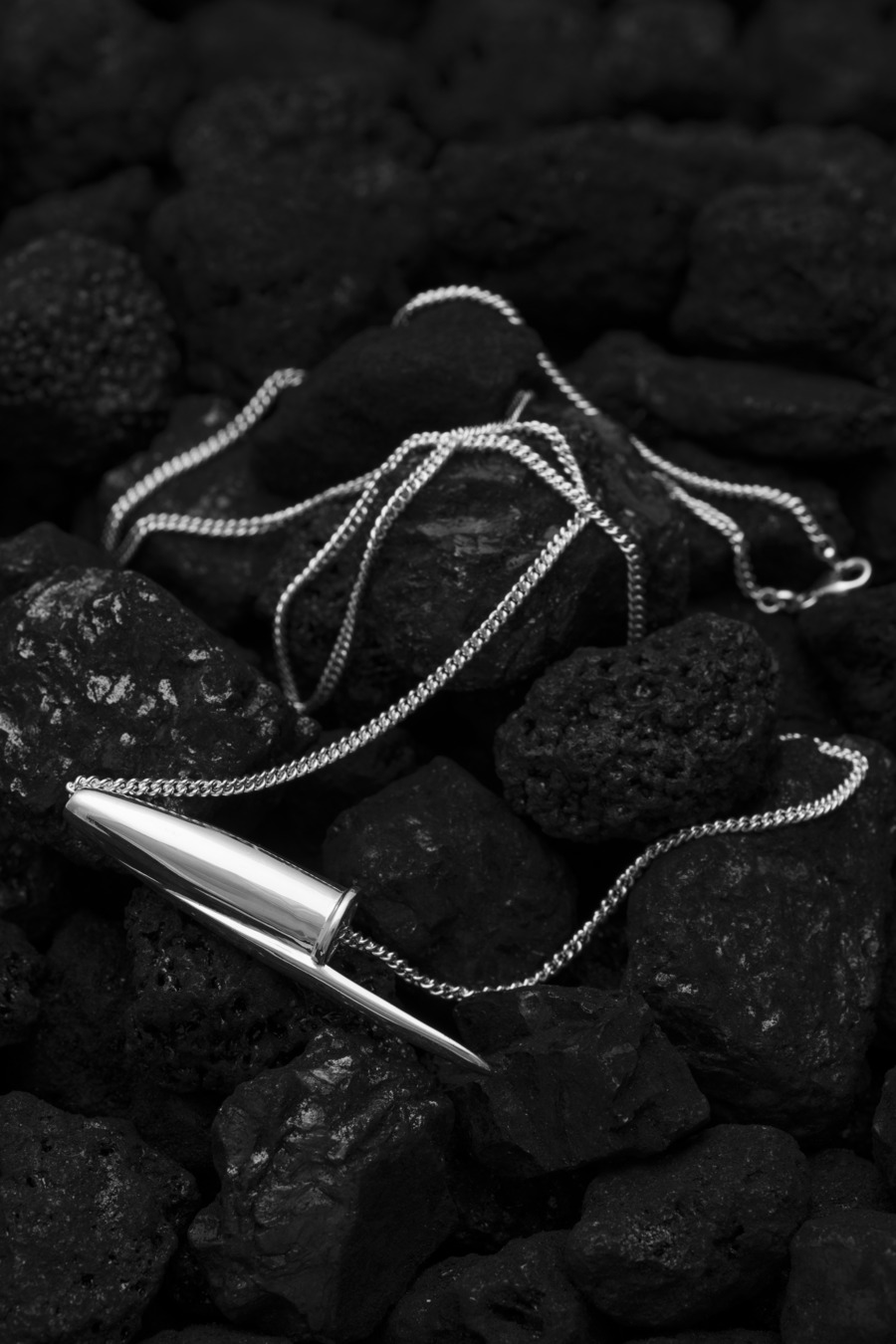 The start of Maison Commun was influenced by Martin Margiela, who, in 2021, transformed an artist edition by Patrick Carpentier – a silver nail – into a piece of jewellery by the simple act of pinning it into the stitches of a jumper