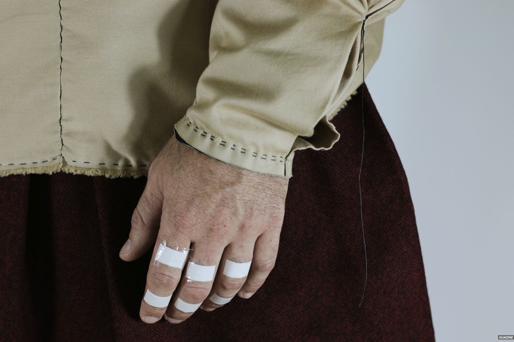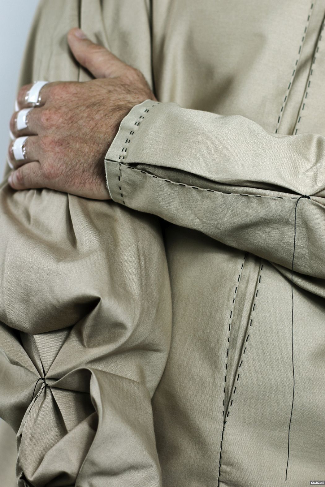 The clothes from this collection are based on just one pattern piece where there is not one cut going through the whole fabric to separate it. Many times I had to redesign sleeves and pockets from scratch. Width of the pattern is fitted according to the width of a fabric therefore for instance sometimes sleeves are folded to fit in.