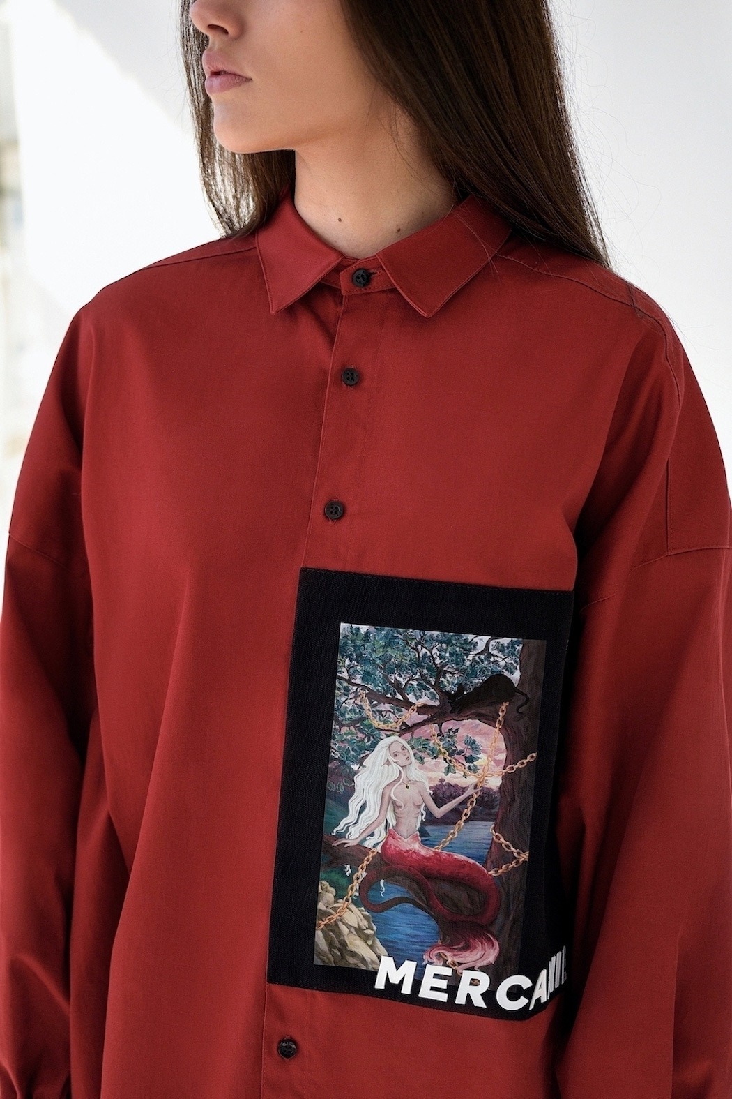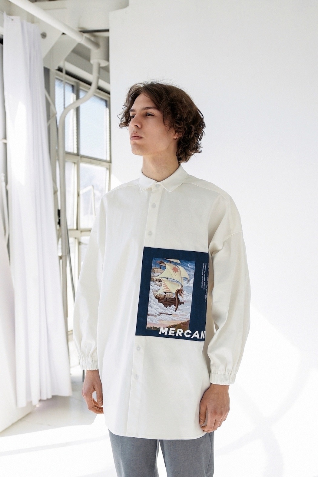 In our times, people love to share values of different cultures and nationalities, so we took the inspiration for our debut collection “From Far-Off Lands” from Eastern Europe culture (especially 3 poems of the famous Russian poets: M.Lermontov “The Sail”, F.Tyutchev “Silentium!”, A.Pushkin “There is a green oak by the sea”) of the era of romanticism. With the sunset and beach vibe, we want to show our vision of what are those poems about discovering your own personality, searching for the dreams and to be open for something that could be strange at the first time, but afterwards could turn into something beautiful. So whole these meanings and ideas we’ve put on the pictures (drawn by our team artist) and printed them with parts of the poems on our shirts. The idea of unisex oversized architecture has come by itself when we thought about the word “freedom”, not only physical but also mental.