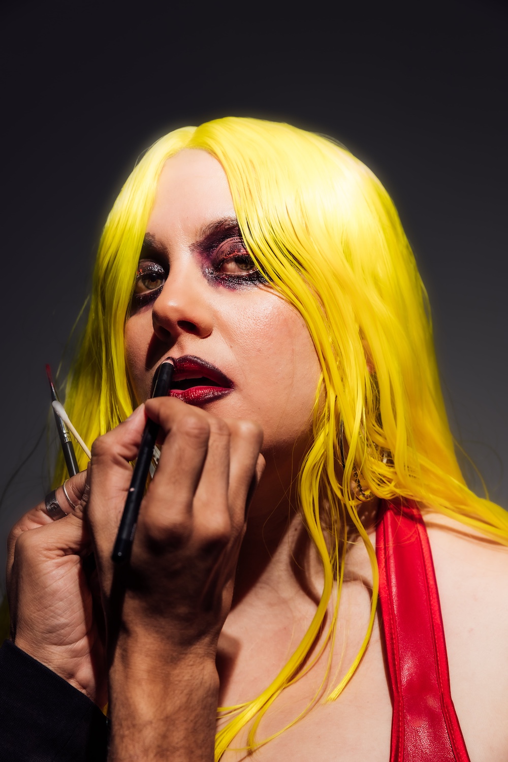 Mo•Louie: Oh yes, these artists are exceptional at what they do, and they are so lovely and kind. Nisal is my go-to MUA, he did all the makeup and hair for my 3 single releases this year. We did the photo and video shoot for Signs, Hold You and Touch Me all in one day. Nisal and I had to plan how we were going to order and evolve the 3 looks in a time management sense. Touch Me was the last shoot of the day so we built the makeup look on top of the look for Hold You which was red eye make-up. Building the black over the red-eye makeup worked with the song and the look. For the yellow hair, we made it a wet look, and Nisal did his signature finger wave but a looser version. After seeing artist Lupa J’s visual campaign for their track A New Kind of Magic I knew that I wanted Something Shit’s pieces in the Touch Me campaign. I met the designer Terzann and tried on a bunch of amazing pieces. Terzann was so lovely, excited and passionate, I had so much fun in the fitting, and I wanted to take everything to be honest! I took a lot of pieces for the shoot, but as we were working out the accessories on the day, the gauntlet made the look sing. And the cherry on top was the jewellery from Vintage Garage and The Cobalt Vault (by Dylan Blue).