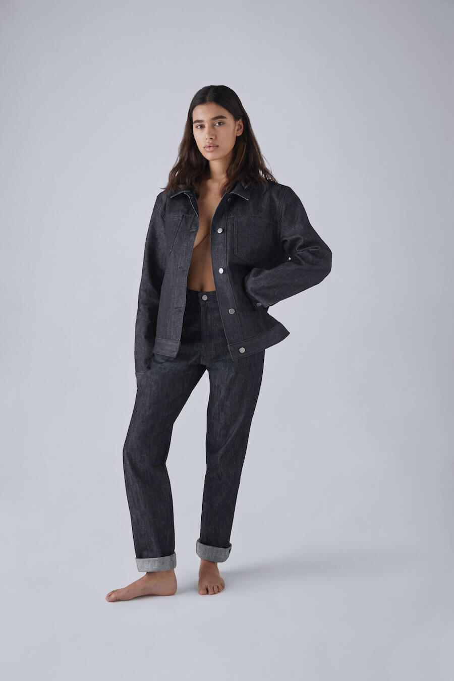 non’s debut collection contains jeans in straight, relaxed, and wide-leg silhouettes with inclusive sizing from 25-36”. Alongside the jeans, there are two jackets, cut to be worn fitted or oversized, and a minimalist bucket hat and tote bag.