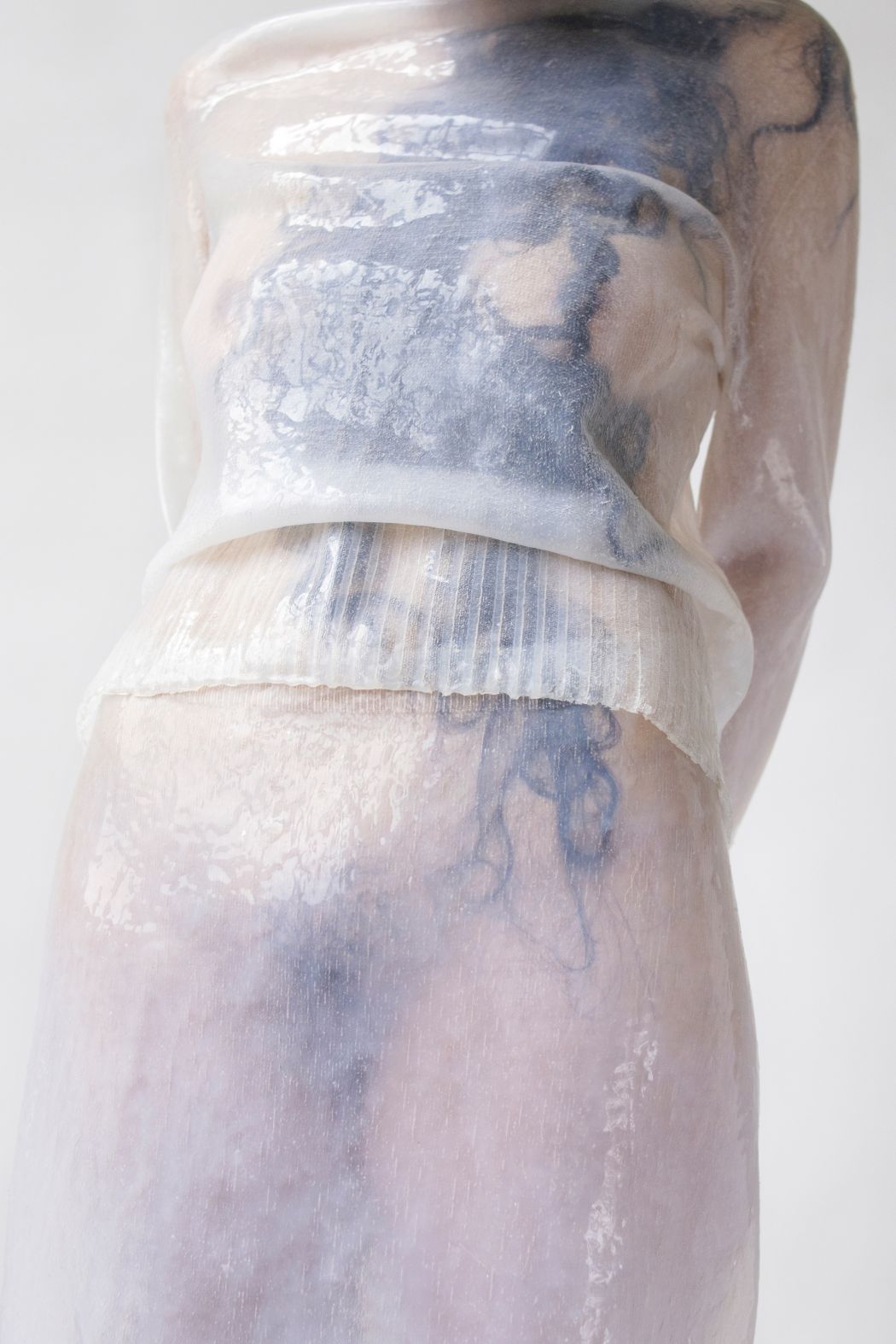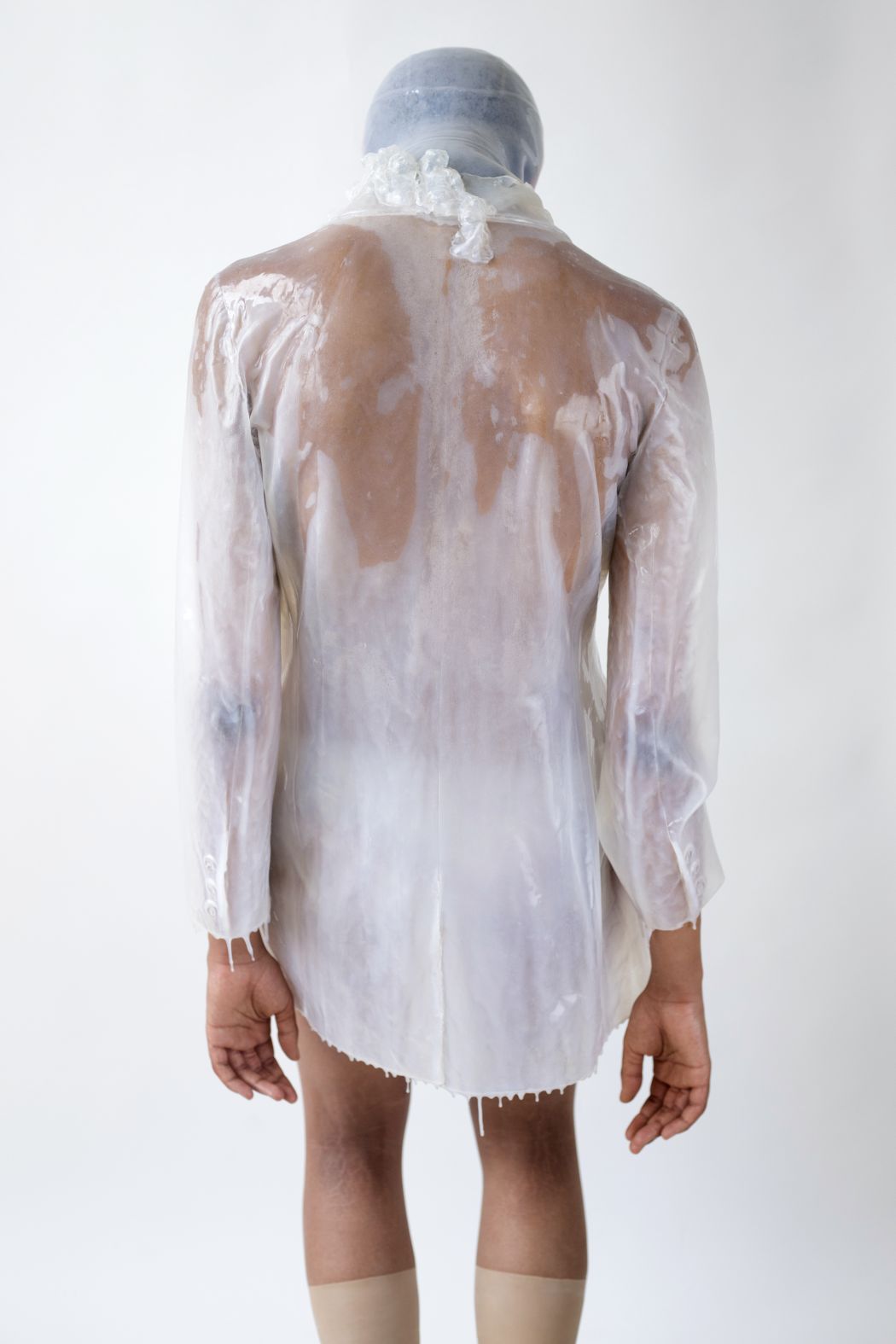 Photographer Milena Zara captured models Sofia Damps, Anna Platen and Siera Lia for a KALTBLUT exclusive fashion feature. All fashion by Sarah Ama Duah. Performativity of things, 2018 within the scope of the project, performativity’ in the fashion context was one principal theme. A Series of casted clothing-molds was created out of this process. In the work the performative potential, which is inherent to clothing, is brought together with the body within an artistic and experimental fashionpractise. Mainmaterial of the work is non-textile liquid silicone. Transparent, rubbery, shiny, resistant, flawless and capable of imagining a manifold repertoire of structures and forms. Milena Zara is a photographer who incorporates her own aesthetic into her images. She has an exact idea of how to shape and arrange colors to create a unique visual language.